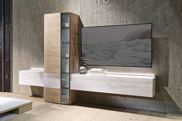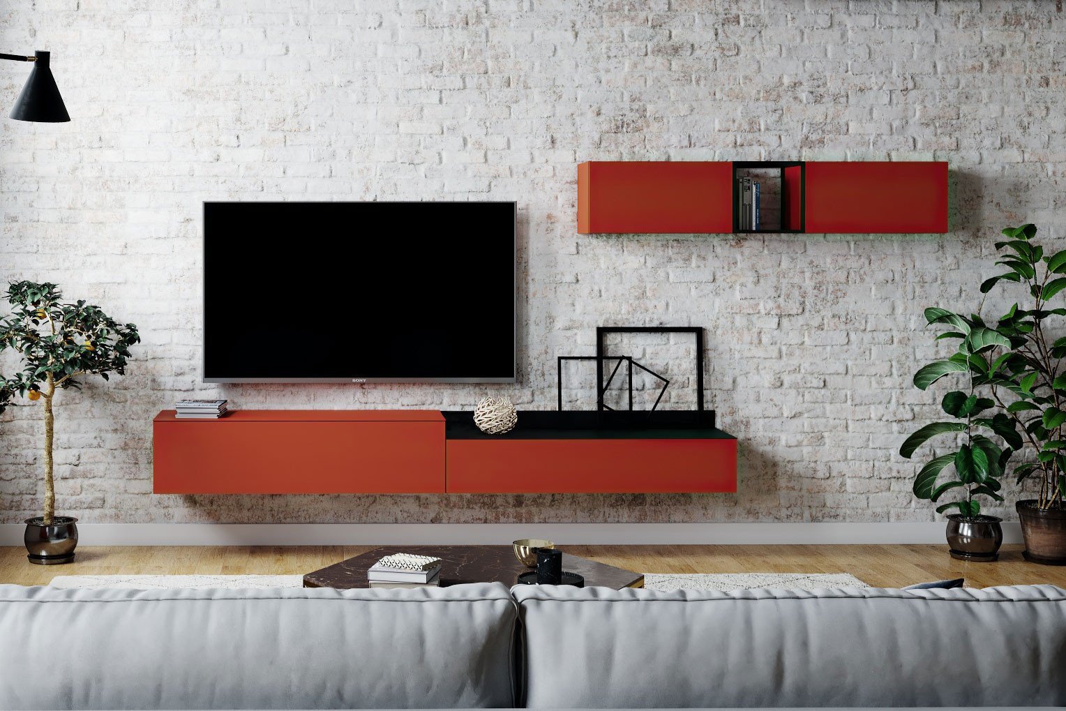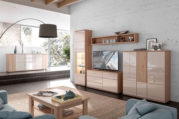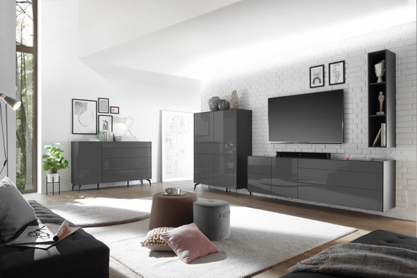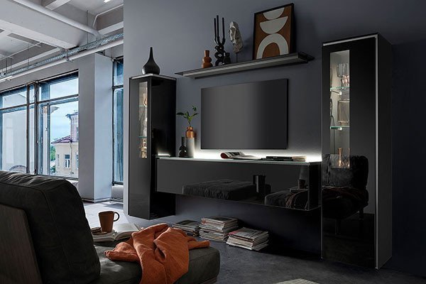 Schrankwand war gestern - der modularen Wohnwand gehört die Zukunft. Immer mehr Wohnungen besitzen einen offenen Wohnbereich. Im Gegensatz zu starren Schrankwänden lassen sich, wie der Name schon vermuten lässt, die einzelnen Elemente modularer Wohnwände flexibel miteinander kombinieren und genauso frei im Wohnbereich platzieren. In der Regel sind Lowboard, Wandregal sowie Schrankelemente - hängend oder stehend - fester Bestandteil solcher Wohnwände. Während das Lowboard den idealen Platz für Ihren Fernseher bietet, lassen sich in den Schränken Gläser, Bücher oder Süßigkeiten unterbringen. Hinter den Glastüren sowie auf der Ablagefläche bietet sich zudem Platz, um Accessoires und Urlaubsmitbringsel gekonnt in Szene zu setzen.
