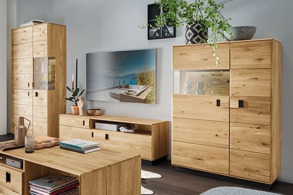Die Wohnwände aus unserem Angebot überzeugen durch vielseitige Einsatzmöglichkeiten, die über das Wohnzimmer hinausgehen. So eigenen sich viele der Modelle auch perfekt dazu, im Jugend- oder Gästezimmer platziert zu werden. Die vielfältigen Wohnwandkombinationen erhalten Sie auf online Möbel kaufen in verschiedenen Holzarten, wie Eiche, Buche, Birke, Nuss- oder Kirschbaum. Über den Möbelplaner bieten wir Ihnen die Möglichkeit, die einzelnen Bestandteile Ihrer neuen Wohnwand selbst festzulegen, um sich so eine individuelle Wohnwand zu konfigurieren. Dazu stehen Ihnen alle Einzelelemente aus dem jeweiligen frei planbaren Programm zu Verfügung. Haben Sie Fragen zu einer unserer Wohnwände oder wünschen ein individuelles Angebot, dann wenden Sie sich vertrauensvoll an unsere Einrichtungsexperten! Diese stehen Ihnen sowohl an der Hotline als auch per E-Mail, Kontaktformular oder Live-Chat kompetent zur Seite.