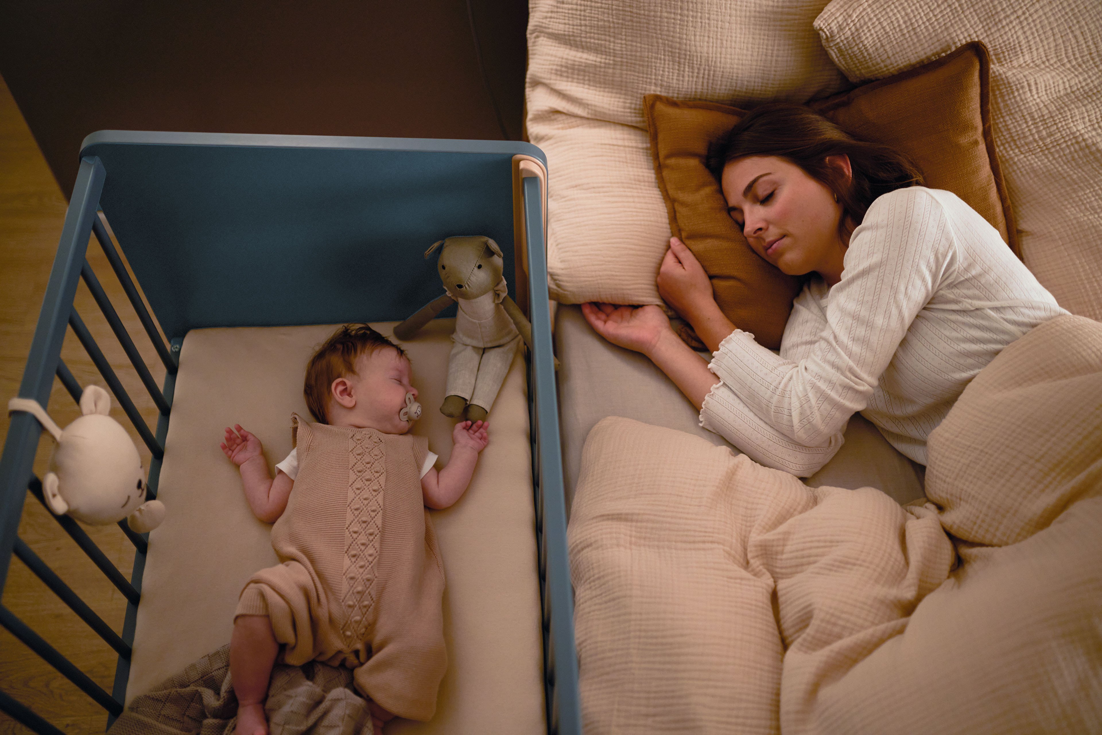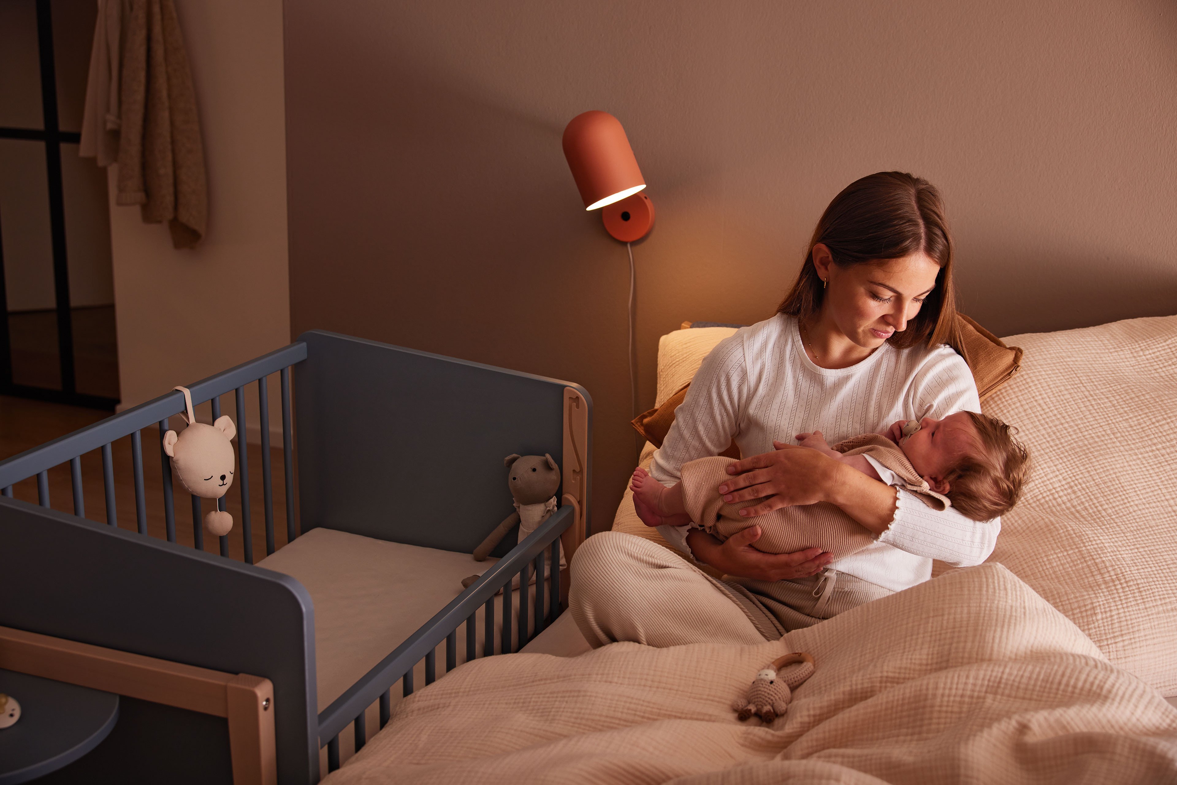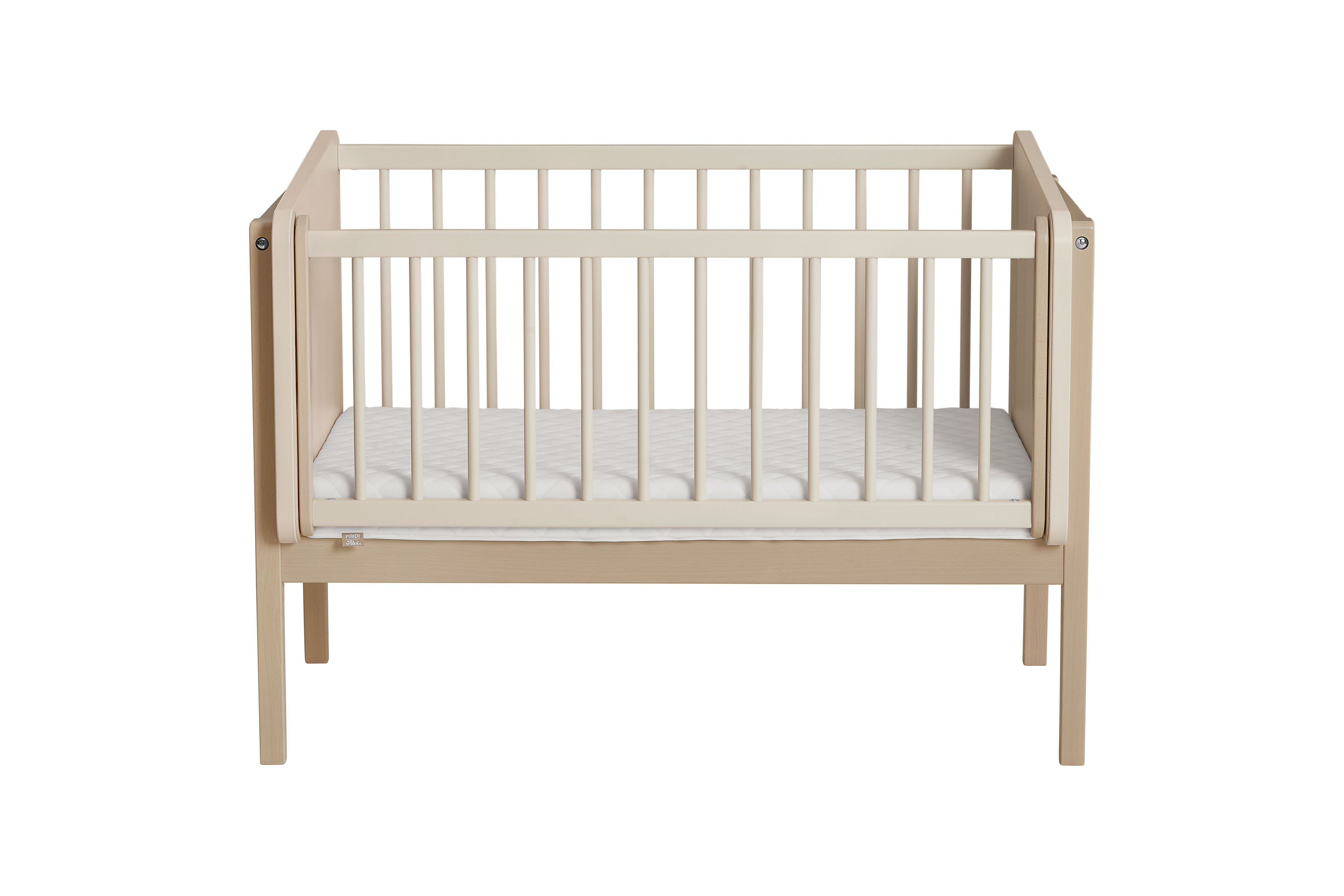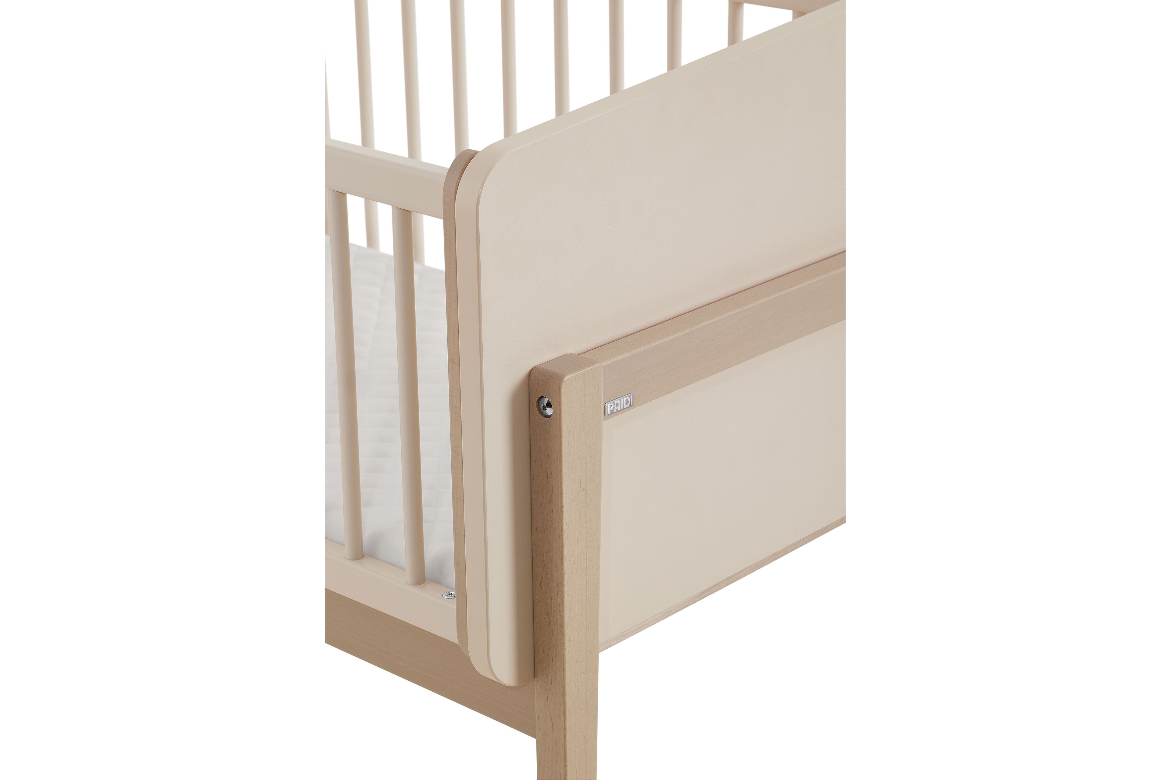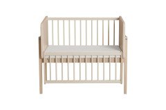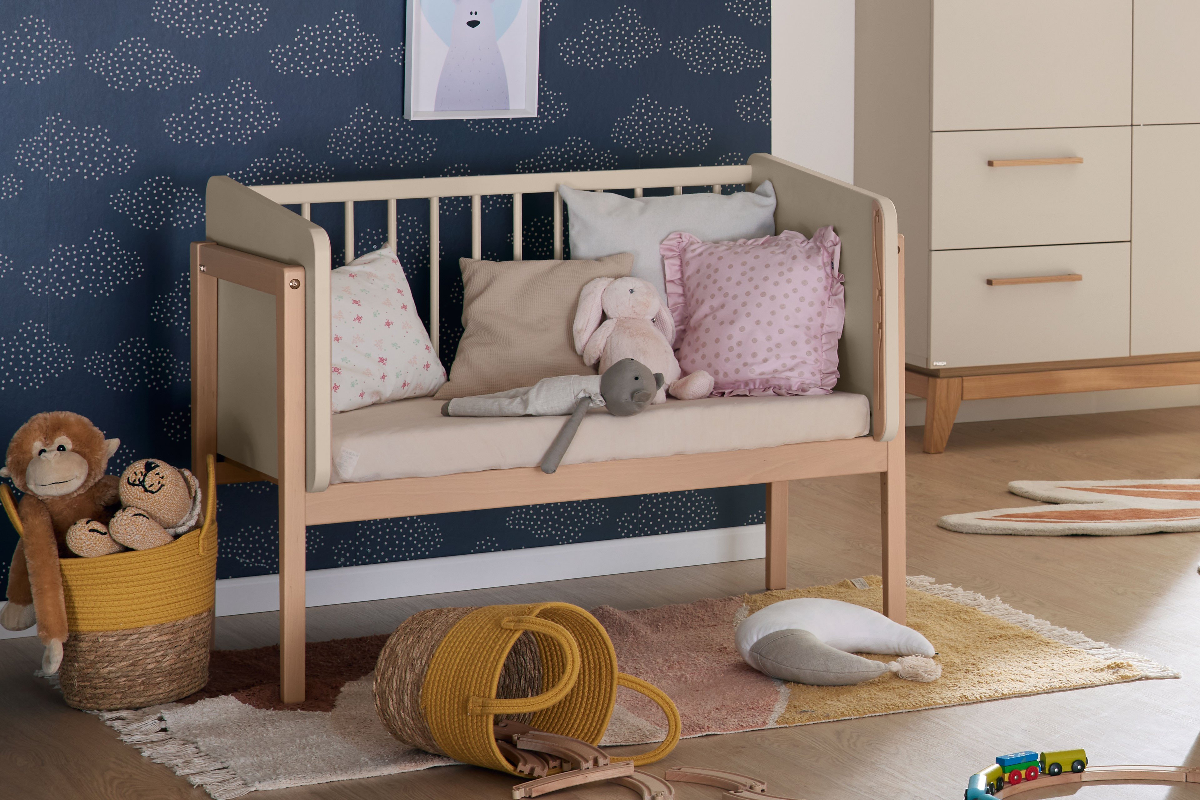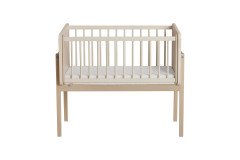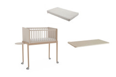 Wir präsentieren Ihnen ein preisgekröntes Modell des German Design Award 2025: das innovative Designer-Beistellbett LITTLE CLOUD von Paidi. Diese Auszeichnung würdigt nicht nur das herausragende Design, sondern zeigt auch, wie perfekt Funktionalität und Ästhetik in diesem Möbelstück miteinander verschmelzen. LITTLE CLOUD ist mehr als nur ein Beistellbett – es ist ein echtes Meisterwerk der Designkunst! Dank seiner besonderen Konstruktion lässt sich das Beistellbett mit einer Liegefläche von 50 x 89 cm perfekt an das Elternbett anfügen. Es wird sicher mit zwei jeweils etwa 1 m langen Spanngurten fixiert. Die clevere Bauweise ermöglicht es Ihnen, jederzeit einen Blick auf Ihr Baby zu werfen und ihm bei Bedarf schnell zur Seite zu stehen. Das Bettchen ist in vier Höhen verstellbar, um sich optimal an jede Schlafsituation anzupassen. Die absenkbare Sprossenseite lässt sich mit nur einer Hand ganz einfach verstellen, und die Liegehöhe kann problemlos an das Elternbett angepasst werden – so sind Sie und Ihr Baby immer auf gleicher Ebene. Diese Flexibilität sorgt nicht nur für höchsten Komfort, sondern fördert auch die innige Bindung zwischen Ihnen und Ihrem Kind. Zusätzlich erhalten Sie in diesem Angebot die passende Matratze LITTLE MATTRESS, das praktische Rollen-Set und die Ablageplatte LITTLE SERVE. Die etwa 7 cm dicke Babybett-Matratze ist mit einem weichen, versteppten Frottierbezug ausgestattet, der bei 60°C gewaschen werden kann. Der Mesh-Einsatz sorgt für eine exzellente Belüftung des hochwertigen Schaumkerns. Die optionalen Rollen verleihen dem Beistellbett Mobilität und ersetzen so einen Stubenwagen, während die Ablageplatte als praktische Aufbewahrungsfläche dient. Ohne die Gitterseite lässt sich LITTLE CLOUD ganz einfach in ein gemütliches TINY SOFA verwandeln. Mit der im Set enthaltenen Tischplatte von etwa 94 x 61 cm wird es sogar zum kreativen Maltisch TINY ARTIST – perfekt für kleine Künstler. LITTLE CLOUD von Paidi - dieses Beistellbett vereint zeitloses Design mit praktischer Funktionalität und wächst flexibel mit Ihrem Kind mit.