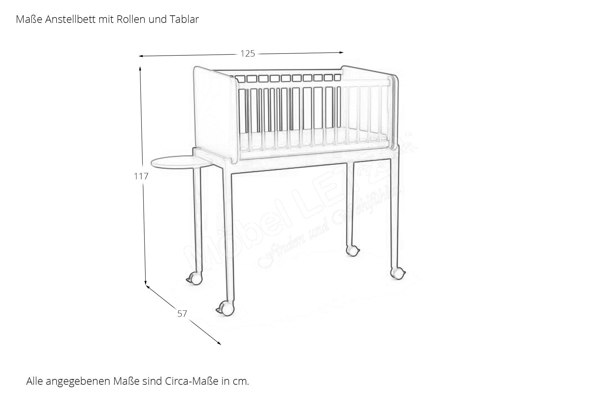 - Anstellbett Liegefläche 50 x 89 cm, BHT ca. 56,9/117/125 cm bestehend aus: