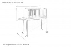 Beistellbett von Paidi - Modell Little Cloud - mit Rollen als Stubenwagen verwendbar, Matratze, Tablar & Tischplatte (für den Umbau zum Maltisch Tiny Table) Little Cloud - innovatives Designer-Beistellbett