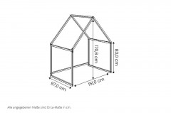 - Spielhaus/ Baldachin: Gesamthöhe ca. 170,6 cm, Seitenhöhe je ca. 83 cm, Gesamtbreite ca. 158 cm, Stellbreite/ lichte Breite ca. 151 cm