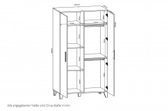 - 1 x 58-651-Y4 - Kleiderschrank BHT ca. 100/200/55 cm