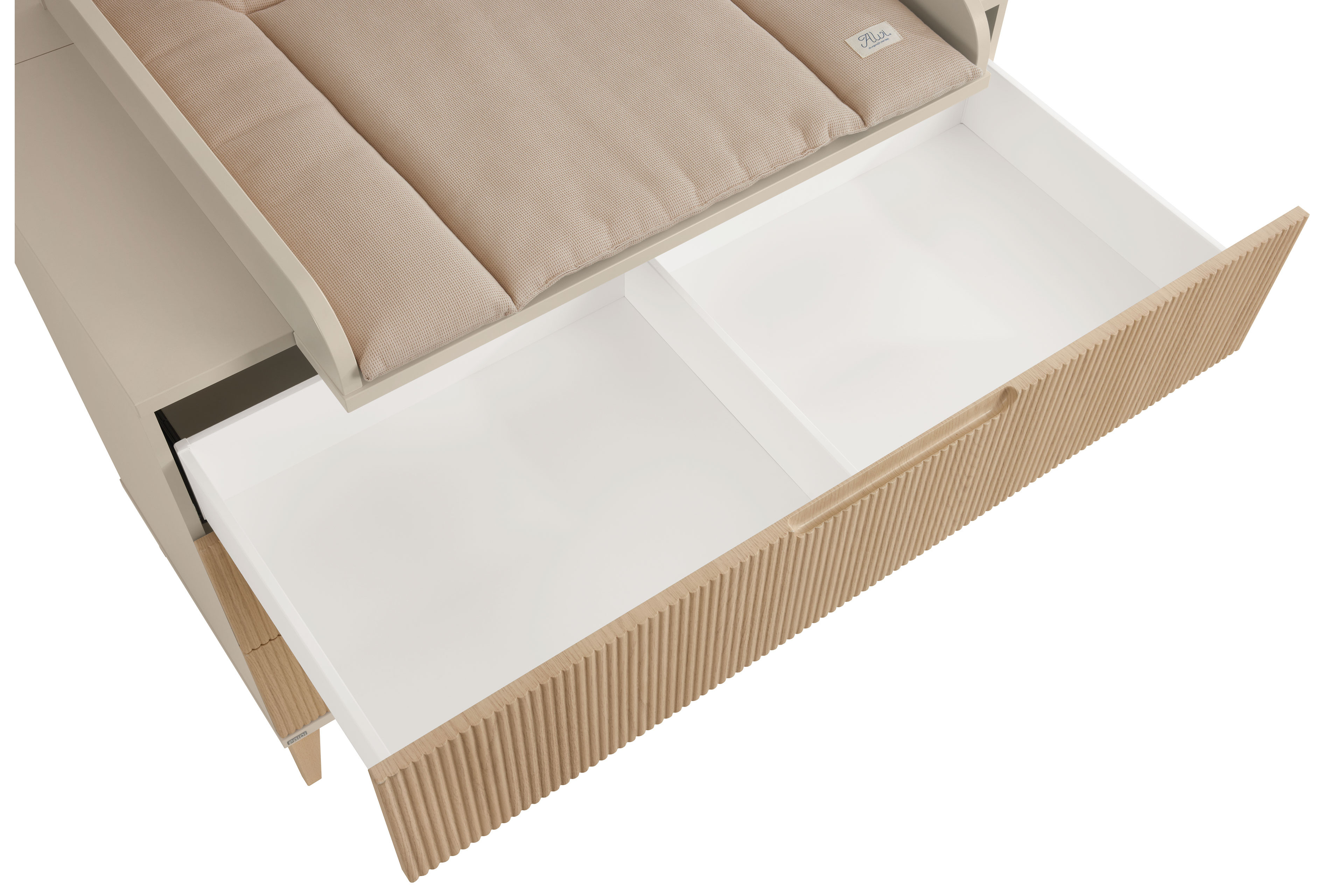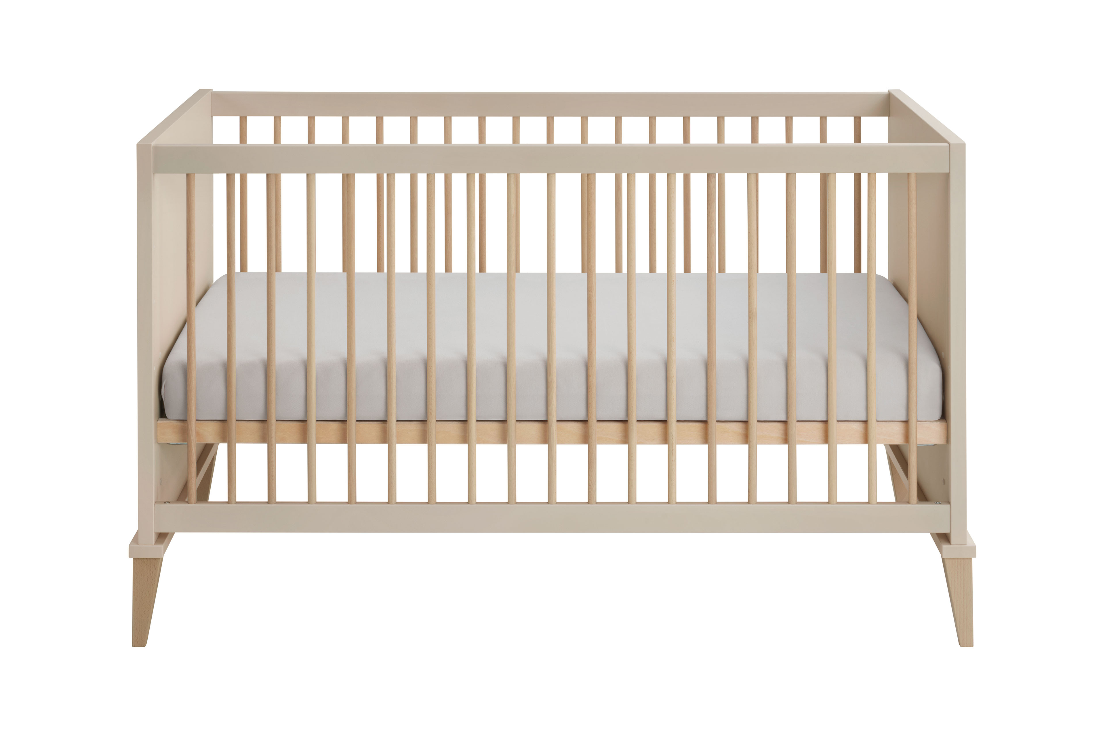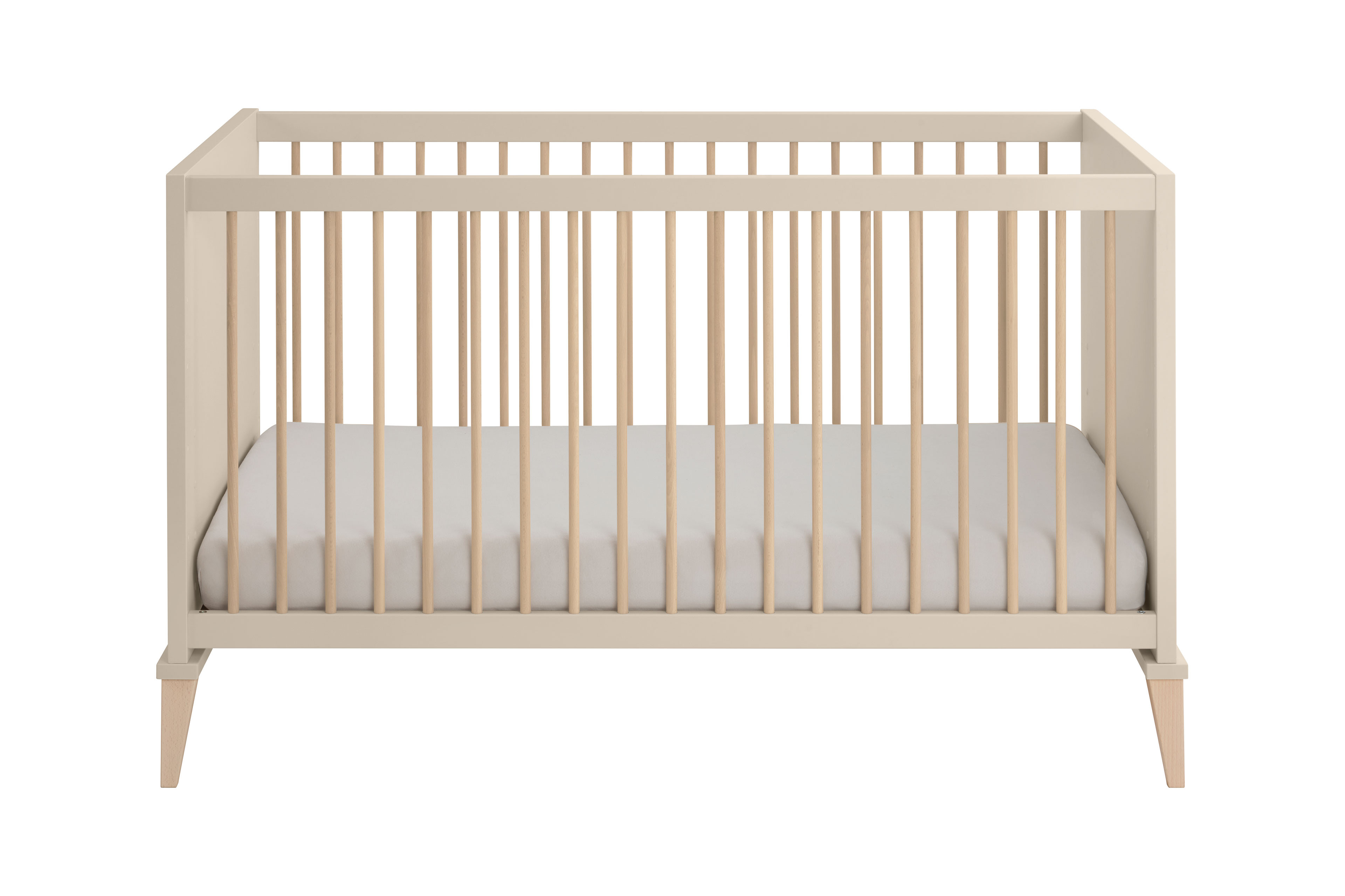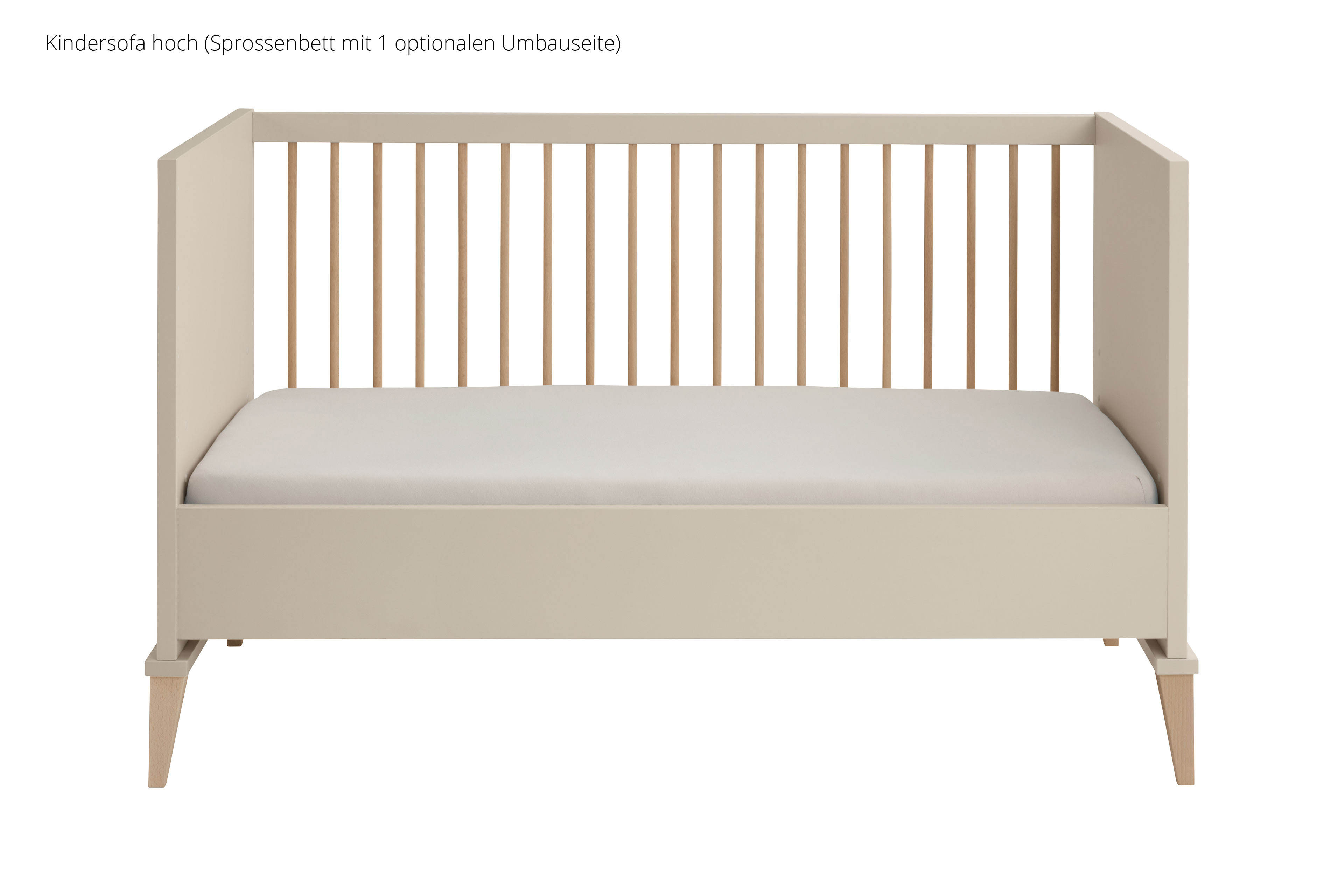 Das Babyzimmer Jonte von PAIDI vereint zeitlose Ästhetik mit ausgeklügelter Funktionalität im angesagten Japandi-Style. Die harmonische Kombination aus warmem Cashmere-Beige und Stripy-Light-Oak verleiht dem Raum eine ruhige, natürliche Ausstrahlung. Sanft gerundete Kanten unterstreichen das weiche, kindgerechte Design und schaffen eine behagliche Atmosphäre. Das 4-teilige Set besteht aus einem geräumigen Kleiderschrank, einem komfortablen Babybett, einer praktischen Schubladenkommode sowie einem Wickelaufsatz. Der Kleiderschrank mit zwei Drehtüren bietet im Inneren ein übersichtliches Kleider- und Wäschefach und sorgt so für Ordnung im Alltag. Das Kinderbett überzeugt mit seinen runden Sprossen aus massivem Buchenholz und einer Liegefläche von 70 x 140 cm. Für optimalen Schlafkomfort sorgt der 4-fach höhenverstellbare AIRWELL®-Comfort Federleistenrost, der sich an die Entwicklung Ihres Kindes anpasst. Die Wickelkommode ist als funktionale Schubkastenkommode gestaltet und verfügt über drei geräumige Schubfächer mit praktischer Facheinteilung, wobei die oberste Schublade mit Vollauszug ausgestattet ist. Der Wickelaufsatz lässt sich flexibel rechts, links oder mittig montieren und bei Bedarf einfach abnehmen. Besonderen Komfort bieten die hochwertigen Dämpfungsbeschläge an den Türen und die Schubkästen, die mit integrierter Stoppfunktion und gedämpftem Selbsteinzug ausgestattet sind – ideal für eine ruhige Umgebung im Babyzimmer. Mit unserem Konfigurator lässt sich das Kinderzimmer individuell ergänzen und ganz nach Ihren Wünschen gestalten. So wächst Jonte von PAIDI mit Ihrem Kind mit und bleibt über viele Jahre hinweg ein stilvoller und funktionaler Begleiter.