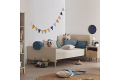 Mit einem Bettrahmen, der komplett in hellem, warm wirkenden Cashmere-Beige gehalten ist und auf massiven Buchenholz-Füßen steht, wurde das Bett aus dem Programm Jonte von PAIDI gestaltet. Es bietet eine größere Liegefläche von 120 x 200 cm und somit mehr Bewegungsfreiheit als ein Bett mit Standardgröße. Diese Liege bietet einige Vorteile und eignet sich besonders gut, wenn Sie eine langfristig nutzbare Schlaf-Lösung suchen. Wenn Sie direkt vom Sprossen- oder Juniorbett zu dieser Schlafgelegenheit wechseln möchten, kaufen Sie hier ein Bett, das vom Kleinkind- bis zum Teenager- und sogar Erwachsenen-Alter nutzbar ist. Bei Kleinkindern liegen Eltern oft mit im Bett, um vorzulesen, zu trösten, beim Einschlafen zu begleiten und bei Krankheit und unruhigen Nächten ganz in der Nähe sein zu können - da ist die 120er Breite natürlich deutlich angenehmer als eine 90er. Außerdem bewegen sich Kleinkinder sehr viel im Schlaf. Um hier der nächtlichen Bewegungsfreiheit mehr Sicherheit zu schenken, empfehlen wir den Zukauf der hinteren Schutzseite und der vorderen Absturzsicherung, um das Herausfallen zu verhindern. Darüber hinaus können Sie über die Zusatzoptionen auch verschiedene Kissen mit unterschiedlichen Bezügen erwerben, die in einem Kinderbett nicht nur hübsch sind, sondern auch ganz konkrete Vorteile für Alltag und Wohlbefinden bringen. So schaffen Sie mit wenigen Klicks eine spielerische und gemütliche Atmosphäre, die das Bett Jonte von PAIDI einladender und persönlicher gestaltet. Je mehr Kissen, desto besser, denn Kinder suchen sich oft ihr Lieblingskissen selbst aus, das ihnen sogar beim Einschlafen helfen kann. Ihnen fehlt jetzt nur noch die passende Matratze? Kein Problem. In unserem Online-Shop bieten wir Ihnen auch zahlreiche unterschiedliche Liegepolster an, damit Sie mit einer Lieferung von Möbel Letz ein komplettes Wohlfühl-Bett erhalten. Tipp: Der Typenplan zeigt Ihnen die Vielfalt aller erhältlichen Jonte-Möbel, die Sie auch über unseren Konfigurator ganz einfach online bestellen können.