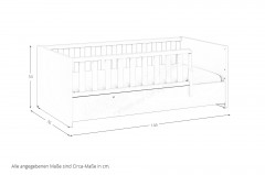 - Bodenbett: ohne Matratze, Liegefläche 70 x 140 cm, mit Design-Gitterseiten vorn und hinten, inklusive AIRWELL®-Comfort Federleistenrost