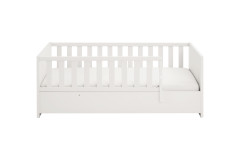 Das Bodenbett Little Snu von PAIDI sieht auf den ersten Blick sehr schlicht aus, aber genau das macht es so besonders. Es steht niedrig am Boden, sodass Ihr Kind leicht hinein- und herausklettern kann. Diese Freiheit gibt den Kleinen ein Gefühl von Selbstständigkeit und Sicherheit in ihrem eigenen Zimmer. Das Bett hat eine Liegeflächengröße von 70 x 140 cm und ist ideal für die ersten Jahre. Es bietet genug Platz zum Schlafen, Kuscheln und Spielen. Die offenen Design-Gitterseiten vorn und hinten machen das Bett hell und luftig und schaffen dennoch eine geborgene Umgebung. Wenn Sie noch mehr Sicherheit möchten, können Sie einen Rausfallschutz für die schmale Gitterseiten-Öffnung hinzufügen. Das Schöne am Little Snu ist, dass, wenn es nicht mehr als Bett benötigt wird es mit ein paar Handgriffen in ein kleines Sofa umwandelbar ist auf dem Ihr Kind Bücher lesen, ausruhen oder einfach entspannen kann. So bleibt das Möbelstück lange ein Teil des Kinderzimmers und wächst mit Ihrem Kind. Die Auswahlmöglichkeiten für das Little Snu sind bewusst einfach gehalten, sodass es nur einige wenige Optionen gibt, die sich leicht kombinieren lassen. Das macht die Gestaltung des Bettes sehr unkompliziert und am Ende erhält man ein Möbelstück, das schön ist und gut zum eigenen Zuhause passt. Das Little Snu von PAIDI ist ein liebevoll gestaltetes Bodenbett, das sich am Montessori-Gedanken orientiert und Ihrem Kind Geborgenheit, Nähe und Selbstständigkeit schenkt. Es ist ein perfektes Möbelstück für das Kinderzimmer, das auf natürliche Weise die Bedürfnisse Ihres Kindes erfüllt.