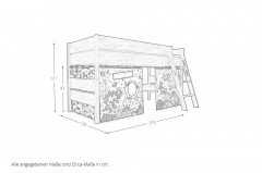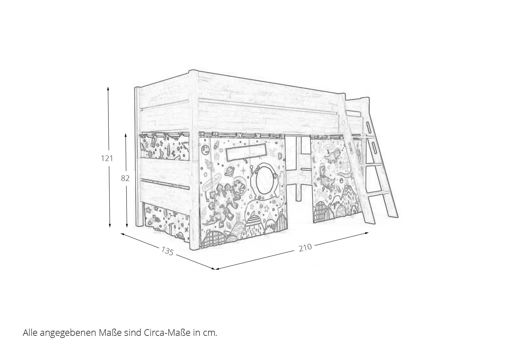 - Spielbett: ohne Lattenrost und Matratze, Häupter + Bettseiten + Schutzseiten + Leiter, lichte Höhe unter dem Bett ca. 81,6 cm
