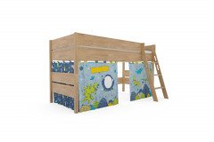 Hochbett aus Eiche von Paidi - Modell Sten - inklusive Vorhängen und Befestigung aus der Kollektion Babyworld Zeitgemäß interpretiertes Retrodesign mit ansprechenden Kontrasten.