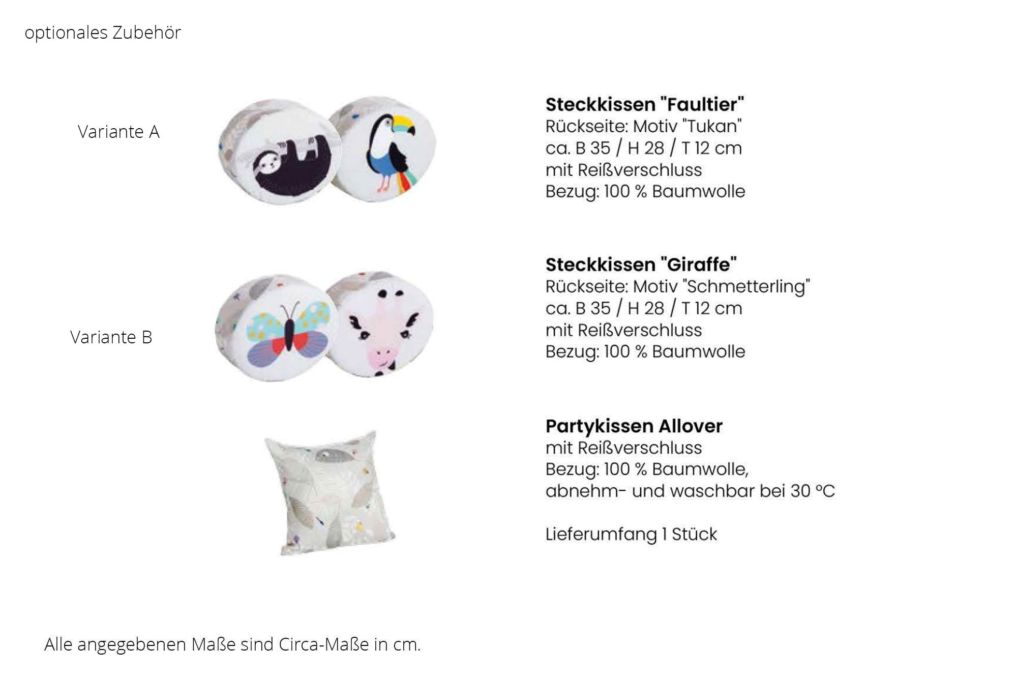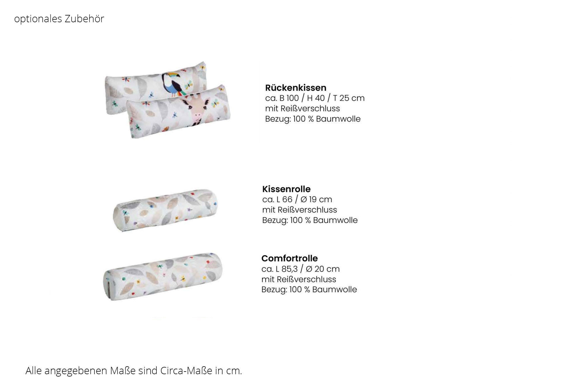 Bezug: 100 % Baumwolle, abnehm- und waschbar bei 30°C (Art-Nr. 1x159 407 0)