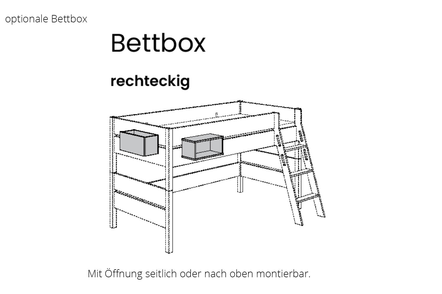 Hinweis: Die Bettboxen sind reine Aufbewahrungsboxen. Sie sind keine Kletter-/Steighilfen sowie keine Sitzmöglichkeit.