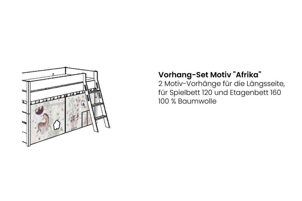 1 x Vorhang-Set Motiv "Afrika", 2 Motiv-Vorhänge für die Längsseite für Spielbett, 100 % Baumwolle,