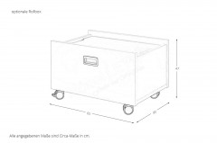 - Liege: Häupter + Bettseiten + Schutzseiten + Schrägleiter, Pfostenstärke ca. 5,2 x 5,2 cm, lichte Höhe unter dem Bett ca. 81,6 cm