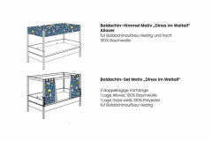 1 x Vorhang-Set Motiv "Dinos im Weltall", 2 Motiv-Vorhänge für die Längsseite für Spielbett, 100 % Baumwolle,