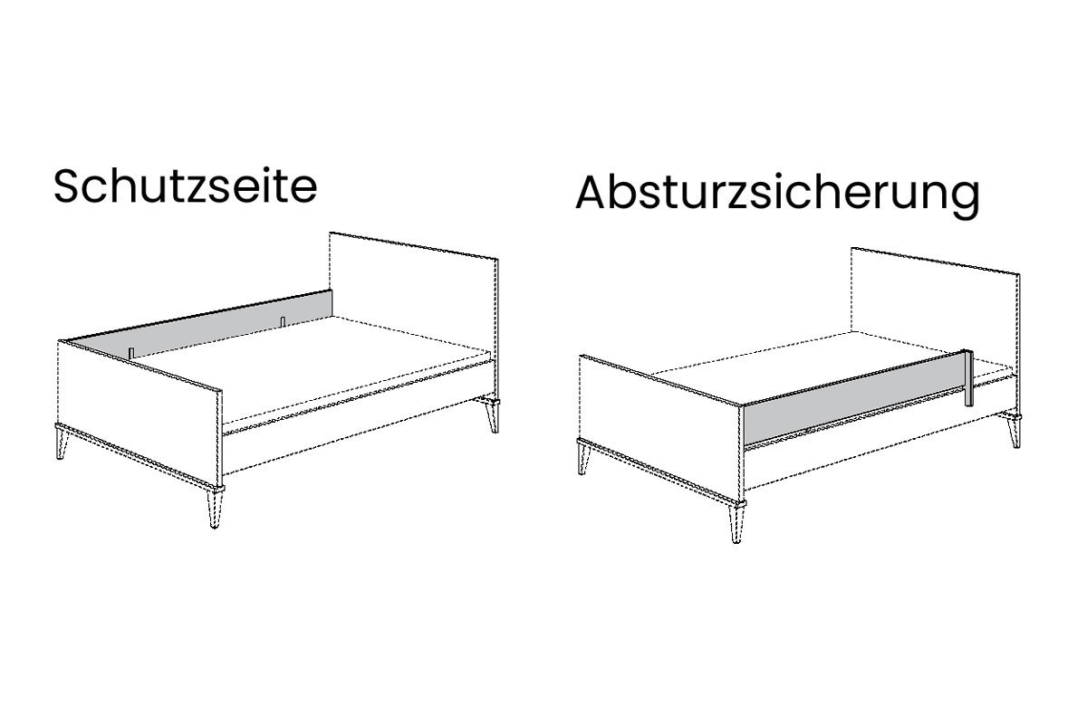 - inklusive Schutzseite hinten und Absturzsicherung vorn mit Halterung (rechts oder links montierbar)