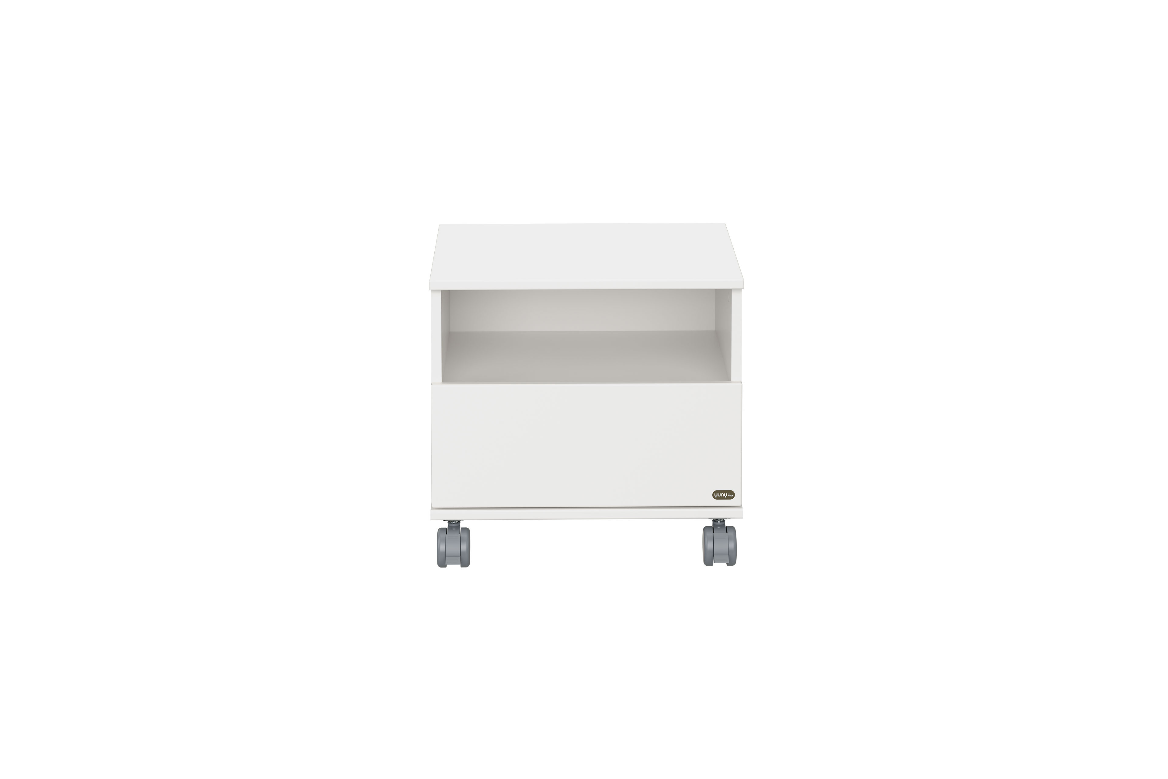 1 offenes Fach, 1 Schublade, 4 Rollen grau/ weiß (2 feststellbar)