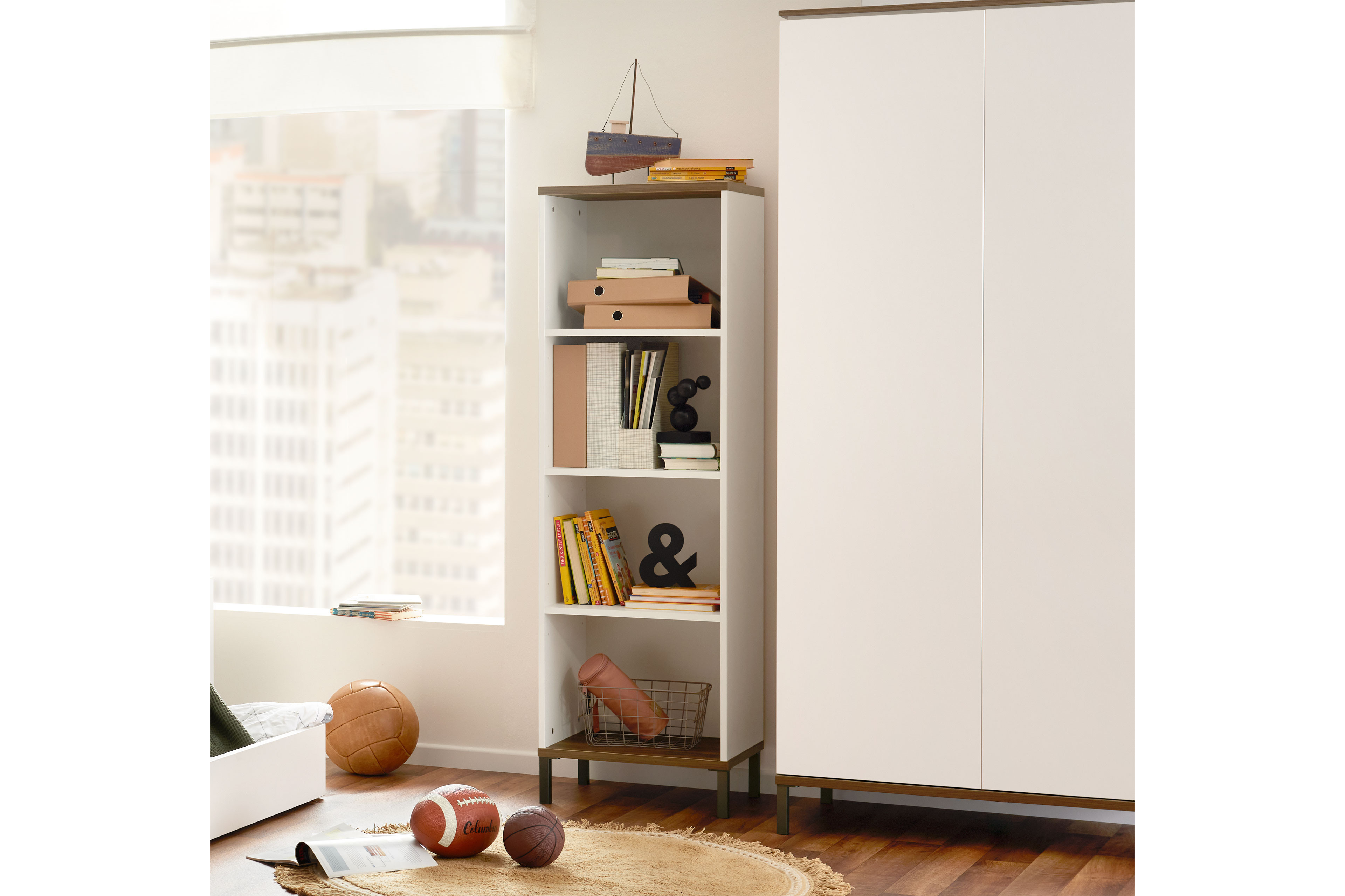 Kontrastreich, modern und dennoch zeitlos tritt das Programm Lovely Aliv aus der YUNY by Paidi Kollektion auf. Unser 2-teiliges Grundangebot zeigt eine Kinderzimmer-Einrichtung, die sich modelltypisch mit einem hellen Lack in Off-White und teilweise mit dunklen Absetzungen in Dark-Walnut präsentiert. Der 2-türige Kleiderschrank schmückt sich mit einem Ober- und Unterboden in dunkler Walnuss-Nachbildung und mocca-farbenen Füßen. Die beiden Türen sind grifflos und haben die Funktion "push-to-open", bei der ein leichtes Antippen genügt, um die Türen zu öffnen. Der Kleiderschrank-Inhalt besteht standardmäßig aus vier Böden und zwei Kleiderstangen, sodass Sie sowohl für hängende als auch für zusammengelegte Textilien eine ideale Aufbewahrungslösung finden. Das Kojenbett ist bereits mit der praktischen Absturzsicherung ausgerüstet und erscheint unifarben mit cremefarbenem Lack. Unter der 90x200 cm großen Liegefläche befindet sich ein Bettkasten, der als Stauraum oder mit einer 90x190 cm großen Matratze versehen als Gästebett nutzbar ist. Da diese Schlafgelegenheit über einen Rausfallschutz verfügt, eignet sie sich auch ideal für kleinere Kinder, die vom Juniorbett in ein großes Bett umziehen. Der kleine Rollcontainer, der hier den Zweck einer Nachtkonsole erfüllt, und auch das Standregal können zu unserem Basis-Set hinzugefügt werden. Individuelle Zusammenstellungen, die aus allen erhältlichen Möbelstücken des Programms Lovely Aliv der YUNY by Paidi Kollektion wählbar sind, ermöglichen wir Ihnen über unseren Konfigurator - frei planen und direkt online kaufen.