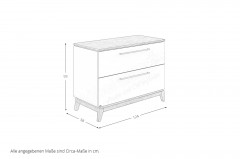 - Kommode: 2 Schubladen, obere Schublade beinhaltet eine innenliegende Schublade mit Facheinteilung