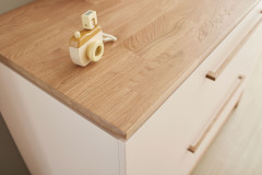 - Deckplatte, Griffe, Sockel: Eiche massiv