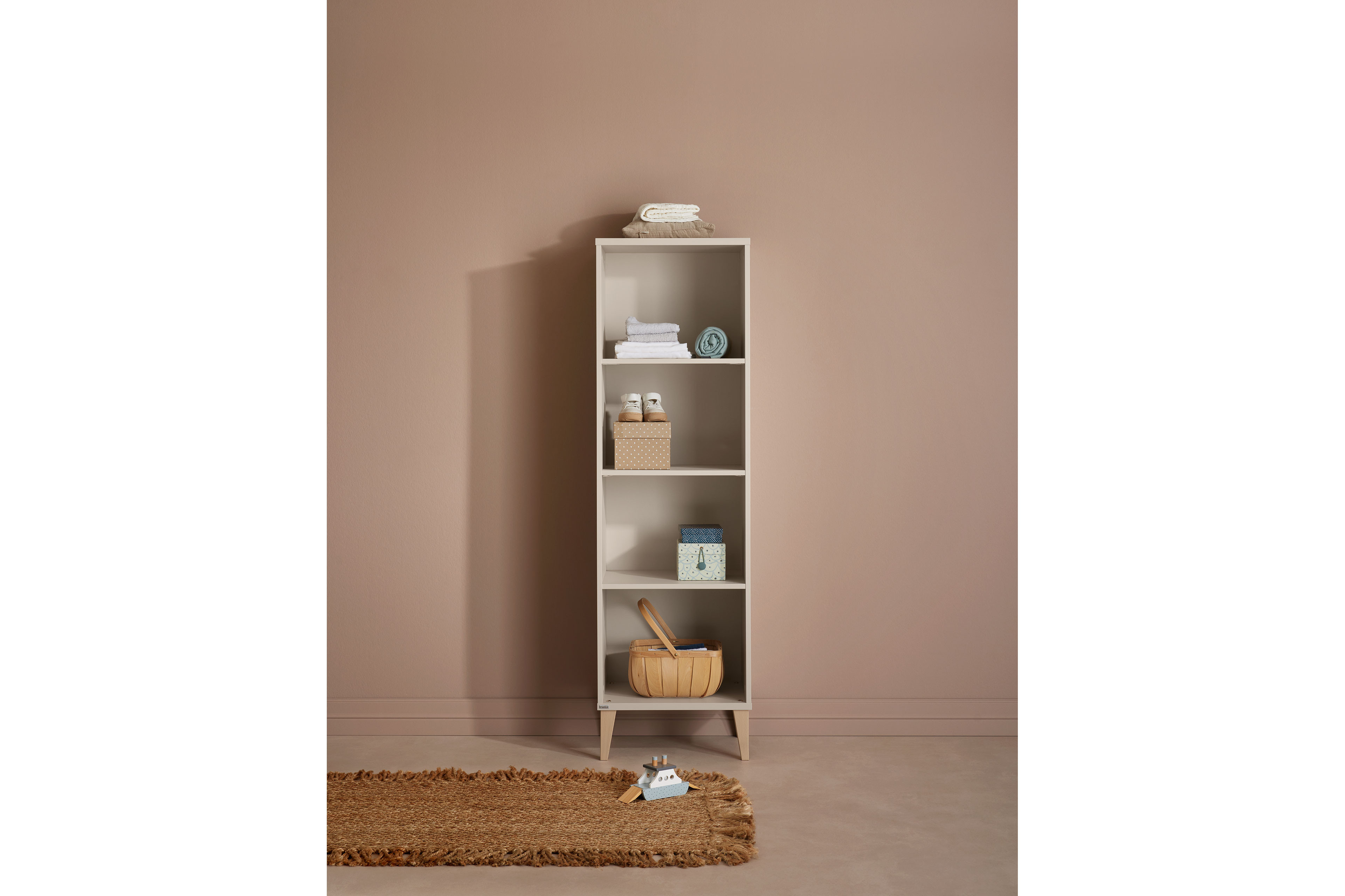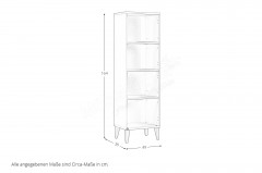 Sie suchen ein schmales Möbelstück, das Ihnen viele Unterbringungsmöglichkeiten bietet und dennoch nicht viel Platz beansprucht? Dann haben wir hier vielleicht genau das richtige Element für Sie: das schmale Standregal aus dem Programm Jonte von PAIDI. Die Grundfläche misst hier gerade einmal etwa 49 x 38 cm und benötigt somit nur einen geringen Aufstellbereich. Auf einer Höhe von fast 164 cm stellt es vier geräumige Fächer zum Verstauen und Ablegen zur Verfügung - dabei ist alles übersichtlich sortierbar, sofort sichtbar und leicht zugänglich - praktisch für Bücher, Spielzeug, Deko oder Alltagsgegenstände. Das Regal überzeugt mit seinem schlichten Korpus in hellem Cashmere-Beige und den massiven Buchenholzfüßen. Aufgrund seiner kompakten Maße passt das Standregal auch in enge Nischen oder kleine Ecken. Mit allen Programmteilen im Überblick lässt sich das Kinderzimmer über unseren modelleigenen Konfigurator ganz einfach nach Ihren eigenen Vorstellungen planen. Vier offene Fächer, schlankes Design - Jonte von PAIDI bringt Struktur und natürliche Ruhe ins Kinderzimmer.
