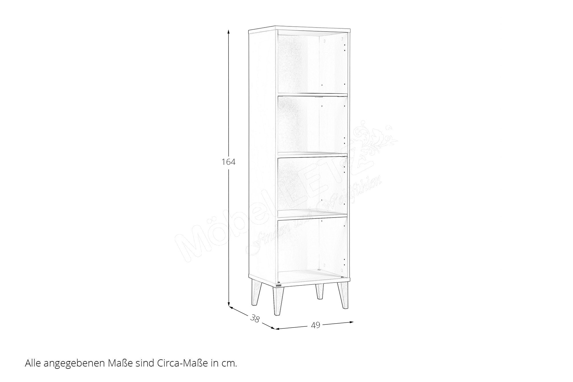 - Standregal: 4 offene Fächer