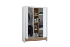 Der POL Power Drehtürenschrank Filou-LE25 verbindet stilvolle Optik mit durchdachtem Stauraumkonzept. Der Kleiderschrank präsentiert sich in einem harmonischen Mix aus weißen Oberflächen sowie Absetzungen in Artisan Eiche Nachbildung, die dem Möbelstück eine warme, natürliche Ausstrahlung verleihen. Hinter den zwei Türen rechts und links verbirgt sich reichlich Stauraum für Kleidung und Wäsche. In der Mitte des Schranks sorgen vier offene Regalfächer für eine dekorative Aufteilung und bieten Platz für Bücher, Spielzeug oder liebevolle Accessoires. Ergänzt wird das funktionale Design durch zwei Schubladen im unteren Bereich, in denen kleinere Utensilien ihren Platz finden. Mit den etwaigen Maßen von ca. 144 x 201 x 56 cm bietet der Filou-LE25 eine durchdachte Aufbewahrungslösung, die in jedes Kinder- oder Jugendzimmer passt. Dank seiner freundlichen Farbkombination und klaren Linien fügt er sich harmonisch in verschiedene Einrichtungsstile ein. Entdecken Sie den POL Power Schrank Filou-LE25 jetzt online - stilvoll gestaltet.