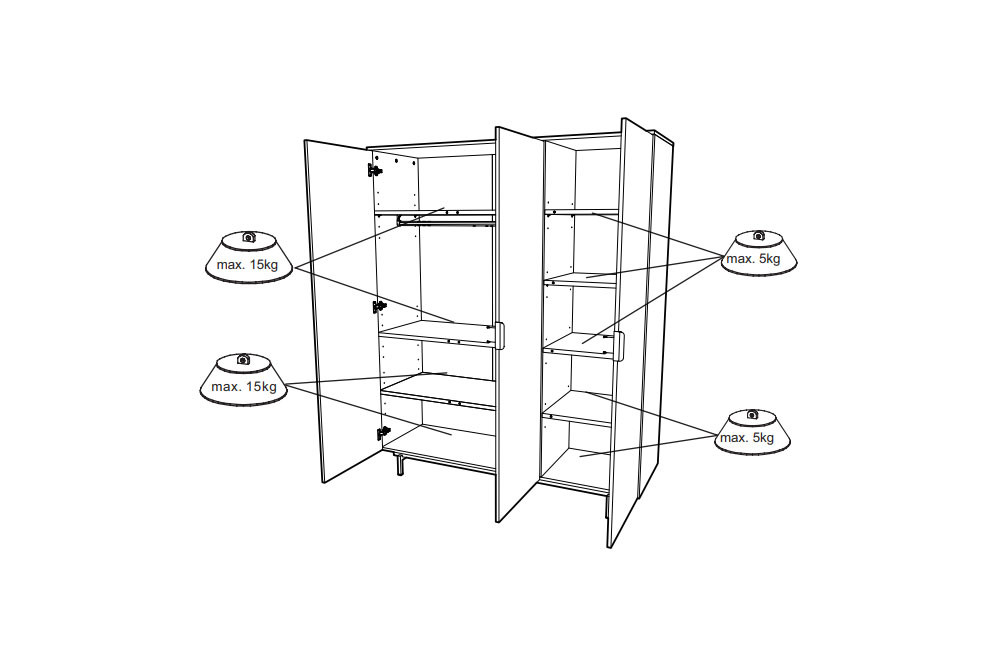 Kippsicherung Achten Sie darauf, dass Ihr Möbel sicher steht und verwenden Sie die Kippsicherung. Kippsicherungen sind nur für stehende Möbelstücke geeignet und dürfen nicht zum Aufhängen von Elementen verwendet werden.