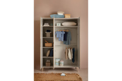 Der Kleiderschrank 3T aus dem Jonte-Programm von PAIDI vereint skandinavische Klarheit mit der ruhigen Eleganz des Japandi-Styles und wird so zum stilvollen Mittelpunkt jedes Kinderzimmers. Der etwa 142 cm breite Korpus in wohnlichem Cashmere-Beige steht auf abgeschrägten Buchenholzfüßen und bedeckt sich frontseitig mit drei Drehtüren, die sich mit einer gestreiften hellen Eichenholz-Nachbildung schmücken. Hinter den drei leise schließenden Türen finden Sie sowohl ein schmales Wäscheabteil mit fünf Fächern als auch ein breites Kleiderfach mit einem Boden und zwei Kleiderstangen vor. Falls Sie das bereits vorhandene Ordnungssystem mit weiterem Zubehör ergänzen möchten, können Sie über unsere Zusatzoptionen Innenschubladen und weitere Kleiderfachböden sowie eine Wäschefach-Unterteilung, eine Innenbeleuchtung und einen Innenspiegel zum Warenkorb hinzufügen. Falls Sie weitere Möbelstücke aus der Kinderzimmer-Serie direkt online kaufen möchten, empfehlen wir Ihnen einen Blick in unseren leicht bedienbaren Konfigurator, der Ihnen alle erhältlichen Elemente des Programms vorstellt. Jonte von PAIDI... interpretiert den Japandi-Style neu.