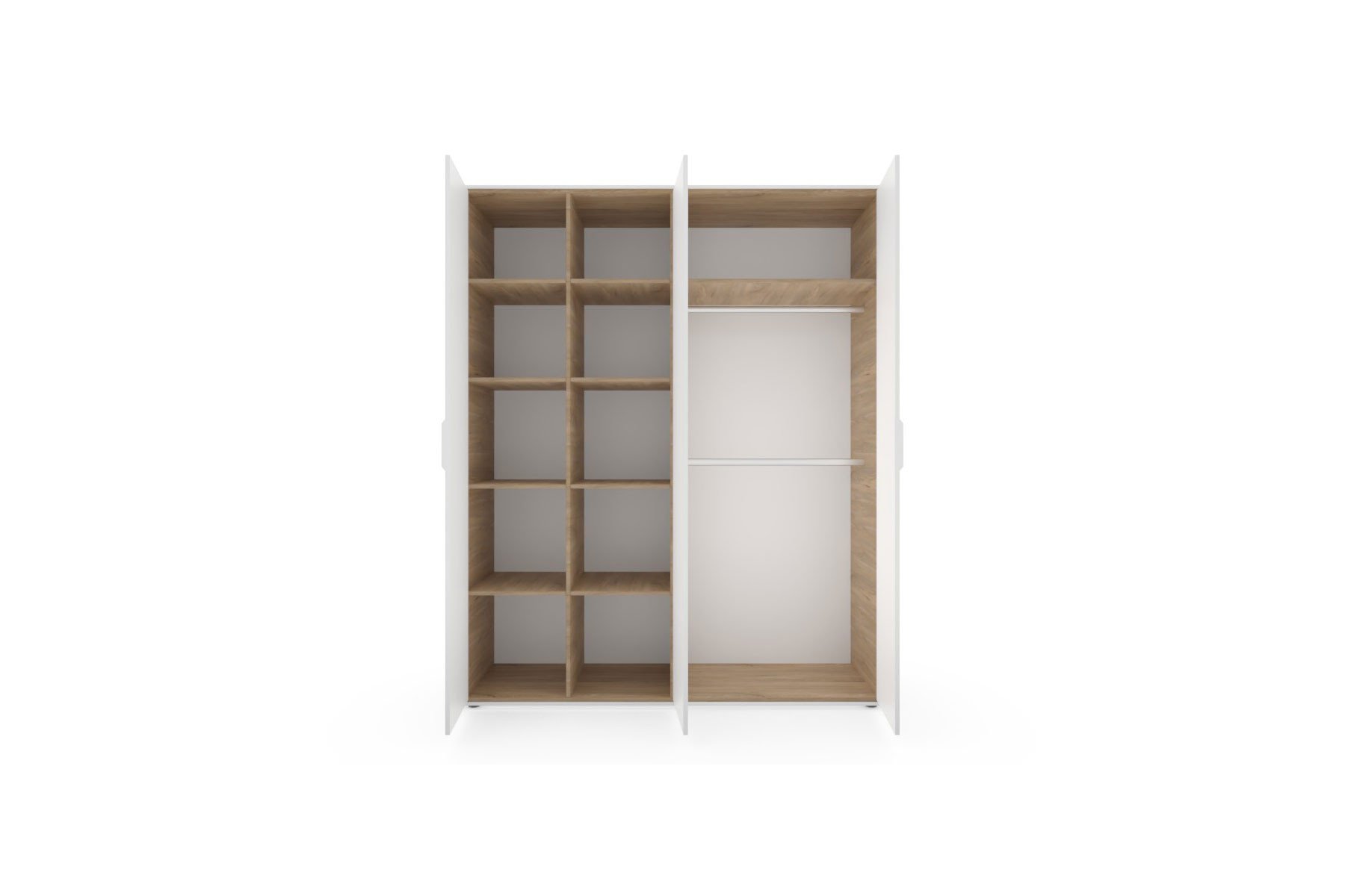- Kleiderschrank 3T offen: 1 lange Tür links, offenes Regal mittig, 2 lange Türen rechts