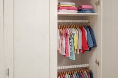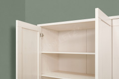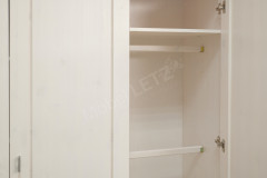 - Kleiderschrank: mit 3 Einlegeböden links (breites Element) und 1 Einlegeboden und 2 Kleiderstangen rechts (schmales Element)