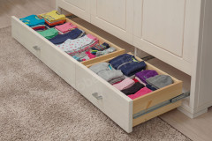 - Kleiderschrank: 3-türig, mit 2 Schubladen auf Metallauszug (1 x groß, 1 x klein)