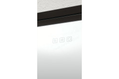 - Spiegel mit Metallrahmen, Sensorschalter im Spiegel, dimmbare LED-Beleuchtung oben im Rahmen, Spiegelheizung mit Abschaltautomatik und indirekter LED-Beleuchtung, bedienbar über Sensorschalter im Spiegel