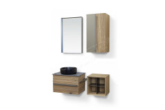 Gestalten Sie Ihr Gästebad mit unserem stilvollen Modell Jarin von Musterring zu einem einladenden und funktionalen Raum. Dieses durchdachte Set beinhaltet einen Waschtischunterschrank aus hochwertiger Wildeiche und Spaltholz und einen eleganten schwarzen Aufsatzwaschtisch. Die gewählten Materialien setzen moderne Akzente und verleihen Ihren neuen Badmöbeln eine frische und zeitgemäße Note. Der praktische Spiegel mit Metallrahmen kommt mit indirekter LED-Beleuchtung, Sensorschalter und einer innovativen Spiegelheizung inklusive Abschaltautomatik zu Ihnen nach Hause. Der abgebildete Wandschrank mit einer Spaltholz und einer Colorglasfront sowie das Regal mit vier offenen Fächern erweitern Ihren Stauraum erheblich und machen Ordnung halten zum Kinderspiel. Alle Elemente sind bereits in Ihr Angebot inklusiert und versprechen absoluten Spa-Komfort für Ihr neues Badezimmer. Gönnen Sie sich und auch Ihren Gästen ein Badezimmer, das sowohl funktional als auch ästhetisch ansprechend ist! Mit dem Gästebad Jarin von Musterring schaffen Sie einen Raum, der zum Wohlfühlen einlädt. Erleben Sie die perfekte Kombination aus Funktionalität und Eleganz – für ein Gästebad, das nicht nur schön aussieht, sondern auch den Bedürfnissen Ihrer Gäste gerecht wird.