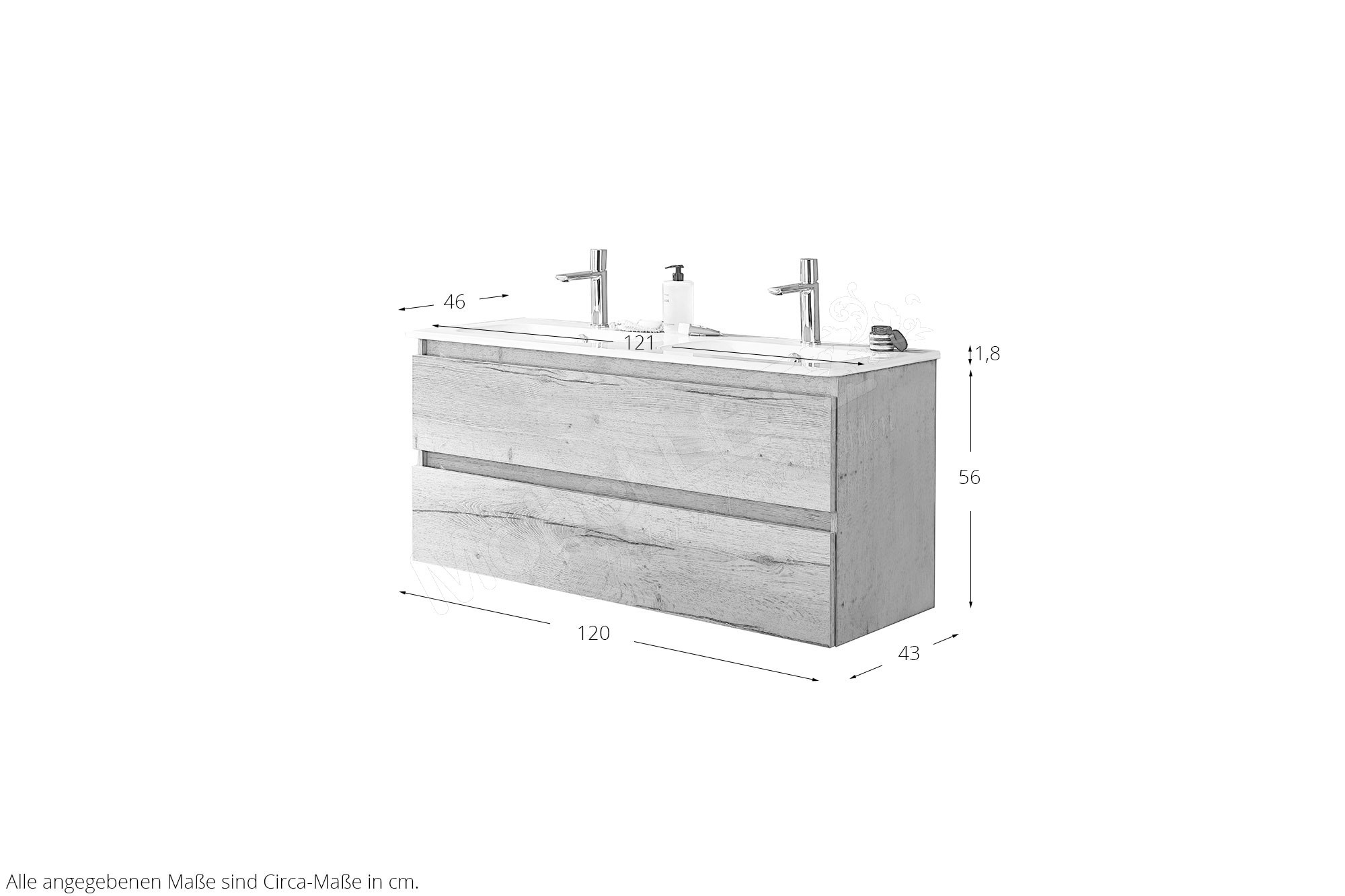 - 1 x WTM542D1 - Doppelwaschtisch, BHT ca.: 121/1,8/46 cm