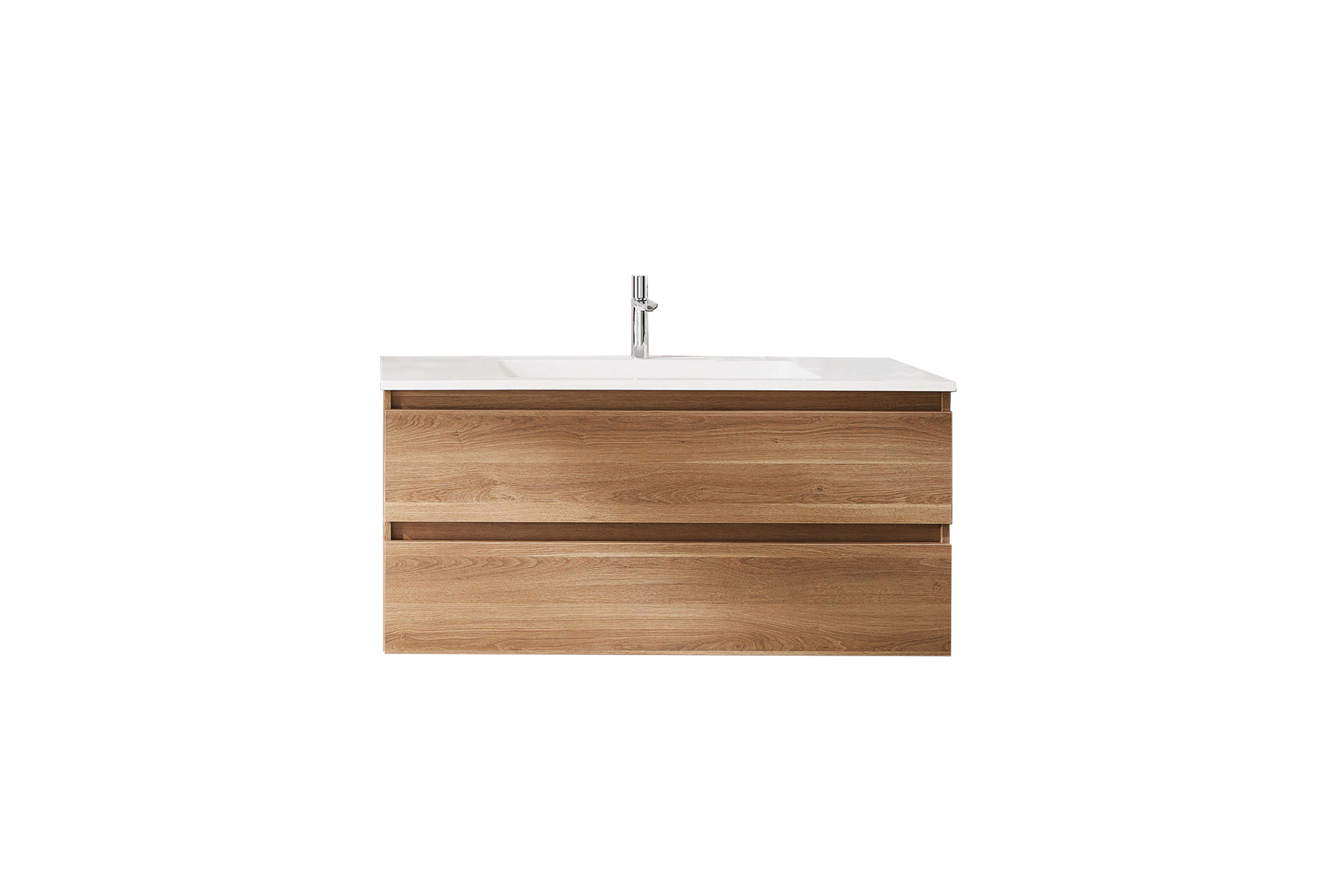 Mit diesem stilvollen Waschtisch-Set der b·solid Kollektion von Puris bringen Sie natürlichen Charme und moderne Eleganz in Ihr Badezimmer. Die warme Holzoptik in Cueno Eiche braun sorgt für eine wohnliche Atmosphäre. Von klassisch bis modern lässt sich diese Ausführung hervorragend mit verschiedenen Einrichtungsstilen kombinieren. Der Unterschrank überzeugt nicht nur durch sein ansprechendes Design, sondern auch durch Funktionalität. Hinter den grifflosen Fronten ist dieses Modell mit einem viel Stauraum ausgestattet. Dieser bietet Ihnen Platz für Handtücher, Pflegeprodukte und mehr. Der hochwertige Waschtisch aus Solid Surface in matt weiß ist langlebig, pflegeleicht und bildet einen einzigartigen Kontrast zum Waschtischunterschrank. Zusätzlich können Sie eine LED-Schubkasten-Innenbeleuchtung mit Bewegungssensor gleich dazu bestellen. Ebenfalls zubuchbar ist der passende Spiegelschrank mit seinen drei Spiegeltüren und das passende Highboard mit einem Metallschubkasten und einer praktischen Wäschekippe. Bestellen Sie sich noch heute das grandiose Badezimmer-Set b·solid aus dem Hause Puris und genießen Sie Ihr neuen Badezimmer in vollen Zügen.