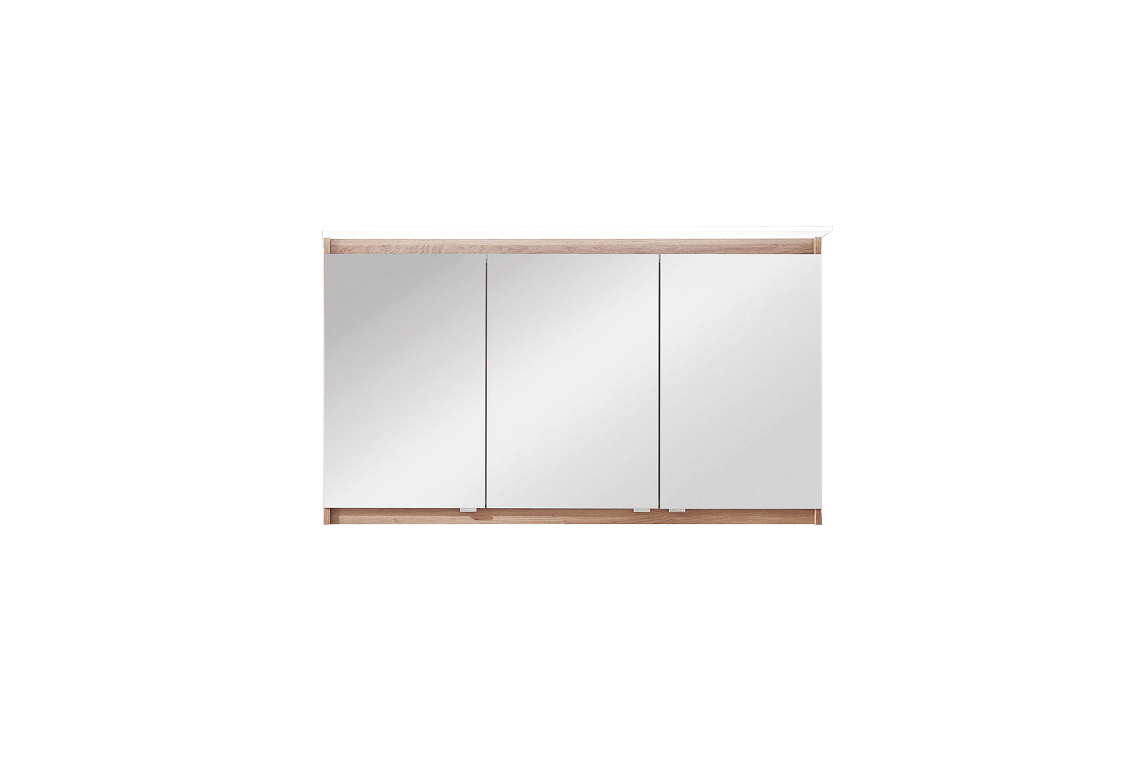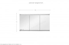 Mit 3 Doppelspiegeltüren, 2 Mittelwänden, 6 Glasfachböden, 1 LED-Flächenleuchte oben mit 1 LED-Converter und 1 Schalter-Steckdosen-Element (Art-Nr. S2A4112GE)