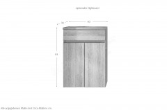 - Front/ Korpus: Melaminharzbeschichtete Front mit ABS-Kante, Cueno Eiche Braun