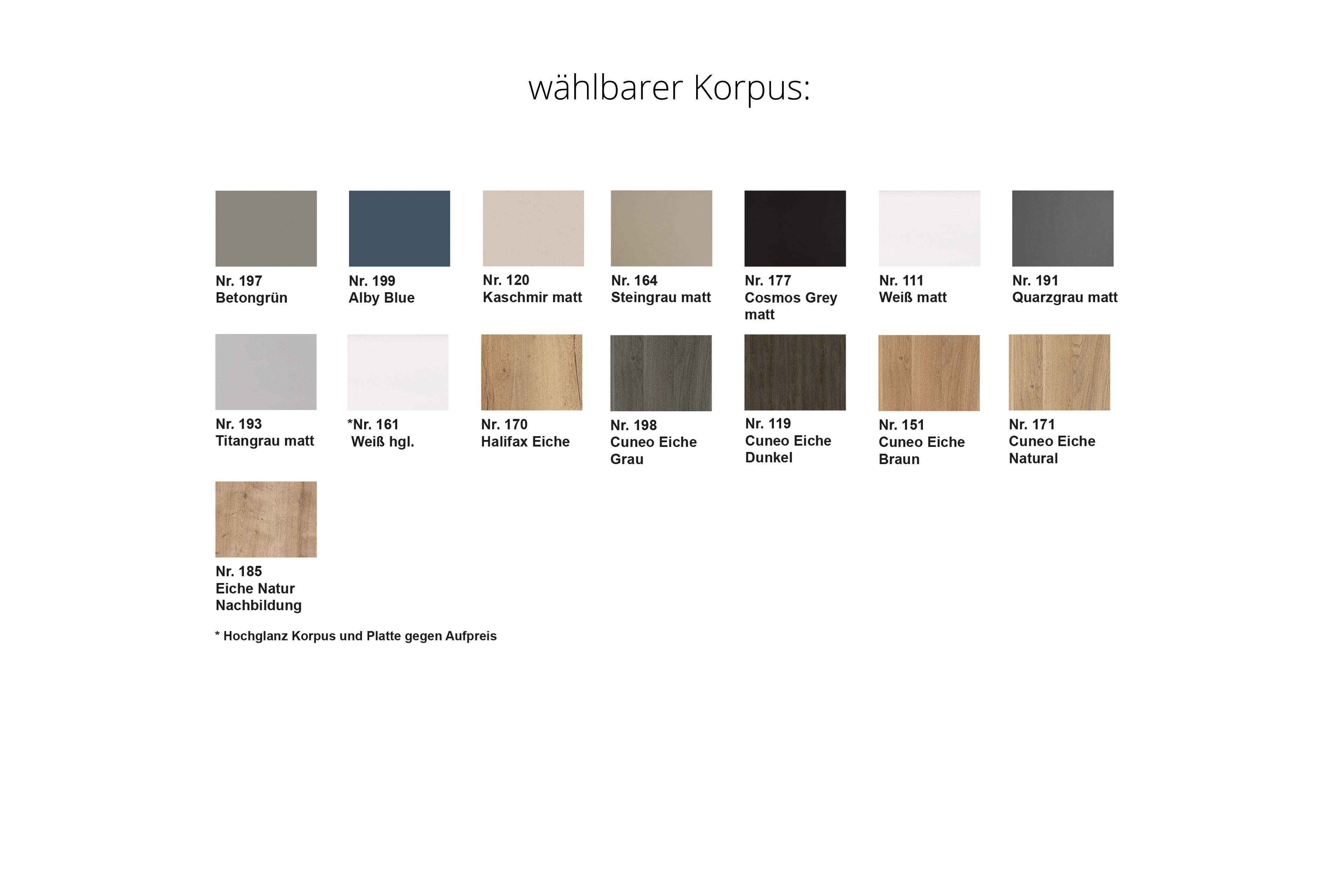 - Front/ Korpus: Titangrau, Foliert mit ABS-Kante