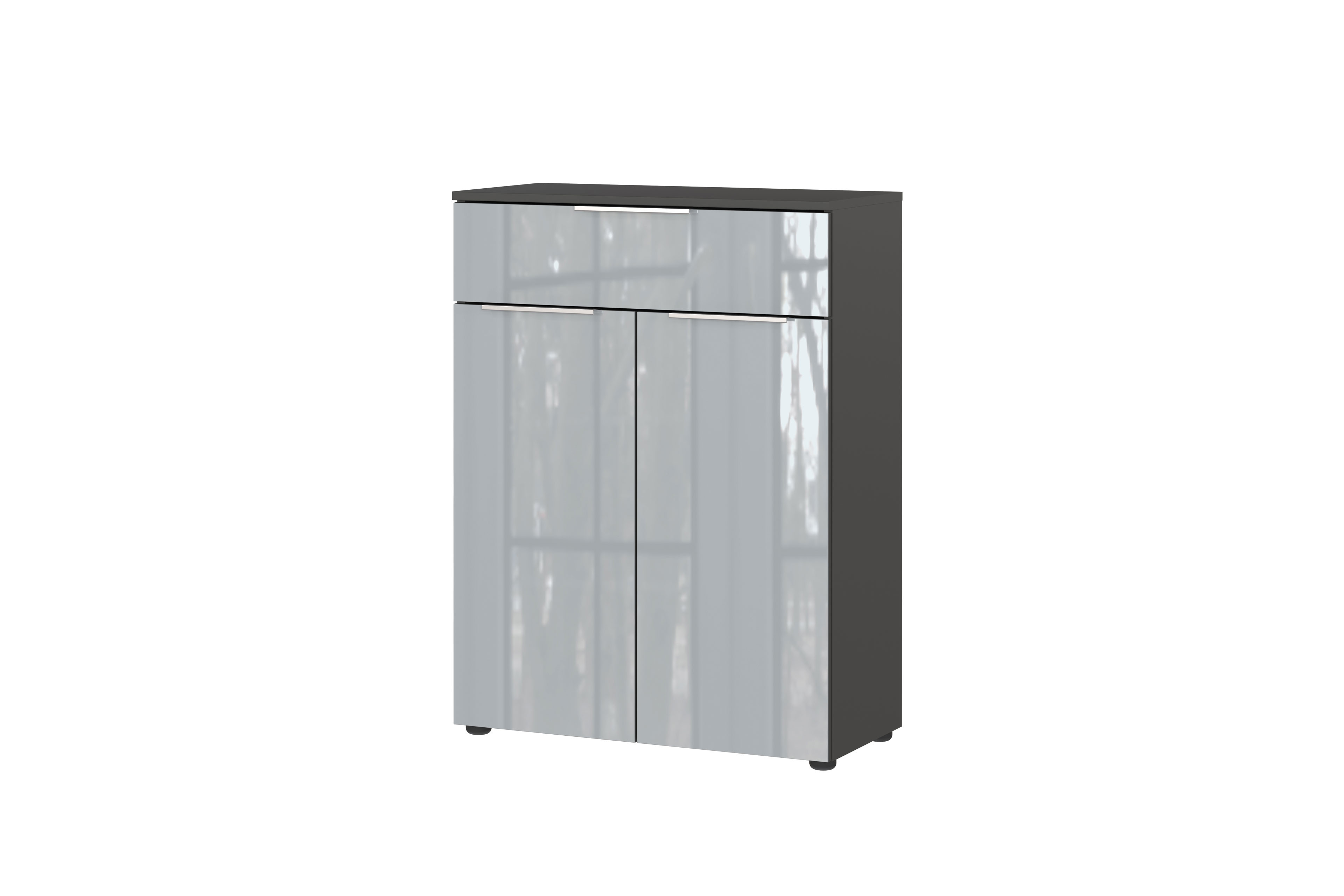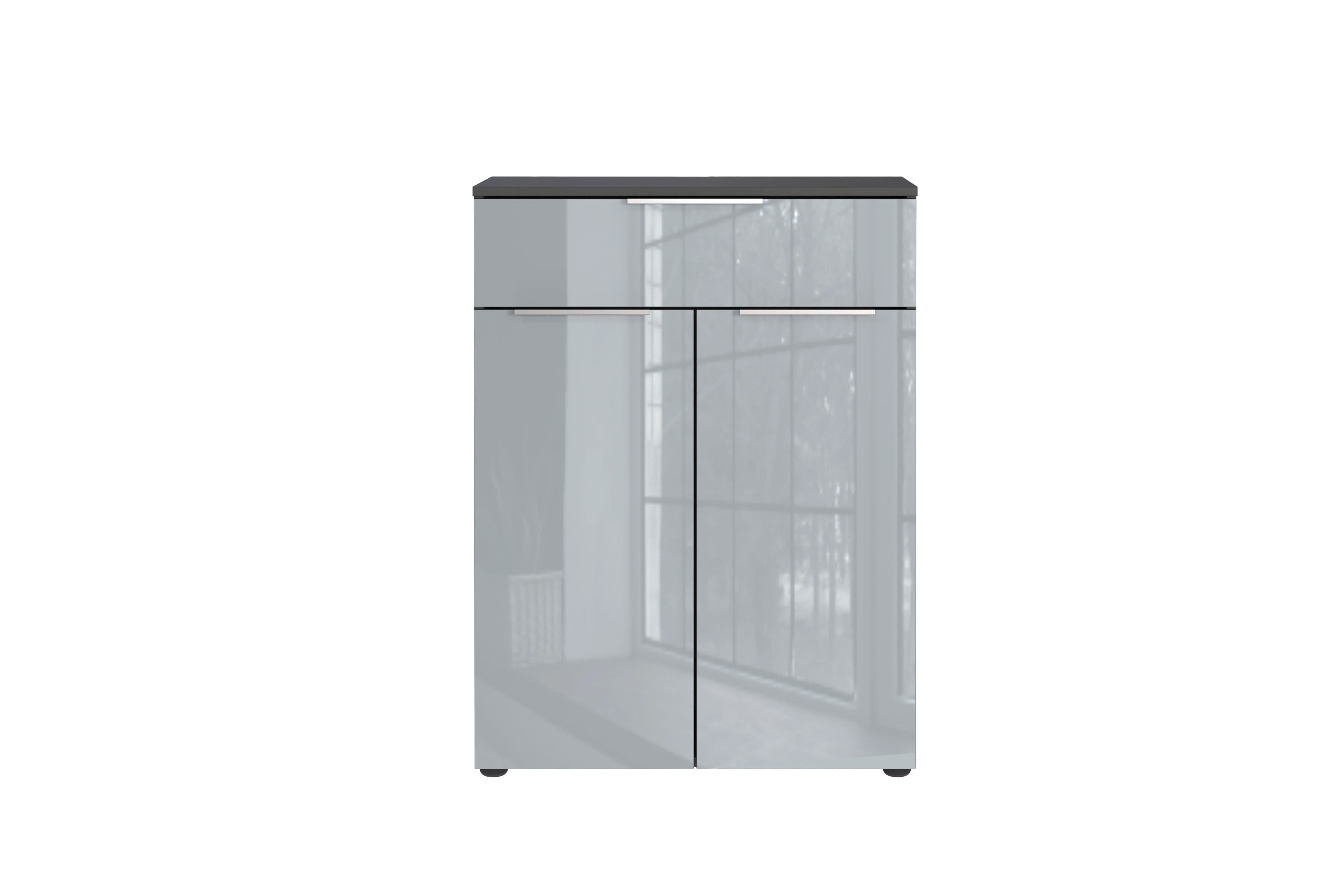 Sie suchen noch eine passende Kommode für Ihr Badezimmer? Dann ist GW-Vasio von Germania genau das, was Sie suchen. Der Korpus in edlem Graphit bildet einen geschmeidigen Kontrast zur hochwertigen Glasfront in Silbergrau und verleiht dem Möbelstück eine einzigartige Optik. Die glatte Oberfläche sorgt zudem für eine besonders pflegeleichte Nutzung im Alltag. Hinter den zwei Türen verbirgt sich ein großzügiger Stauraum für Handtücher, Pflegeprodukte oder Reinigungsutensilien. Ergänzt wird Ihr neues Platzwunder durch eine praktische Schublade, die sich perfekt für kleinere Badaccessoires eignet und schnellen Zugriff ermöglicht. Ab jetzt ist alles ordentlich verstaut mit der Badezimmer Kommode GW-Vasio von dem Hersteller Germania.