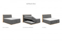 - Box: tragende Teile aus Massivholz, 5-Gang-Bonell-Federkern-Polsterung (ca. 220 Federn bei Größe 100 x 200 cm)