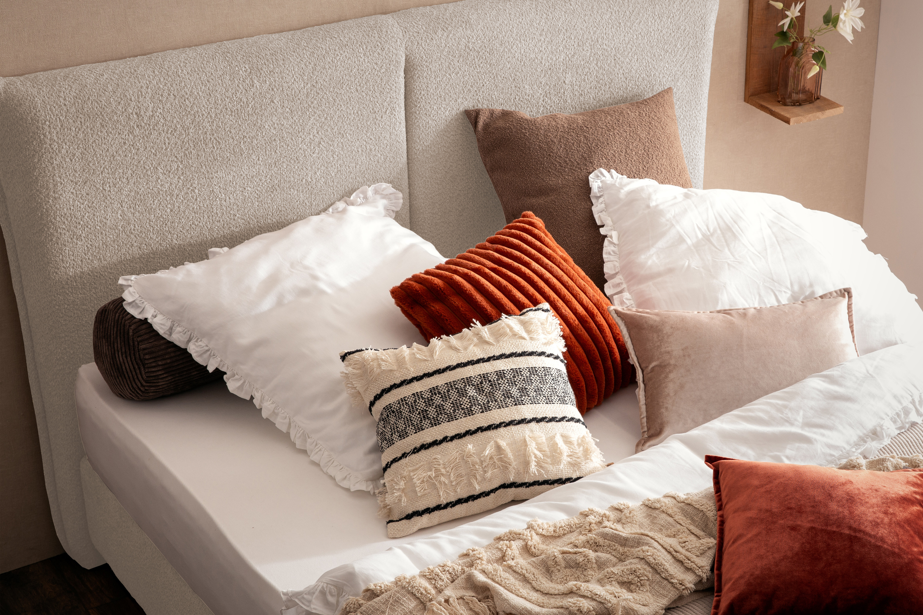 Stellen Sie sich vor, wie Sie Ihr Schlafzimmer betreten und sanftes Licht durch die bodentiefen Fenster fällt, sich kuschelige Kissen aneinanderschmiegen und liebevolle Dekoration dem Raum eine warme, einladende Atmosphäre verleiht. Es ist ein Ort der Ruhe, der Geborgenheit und der kleinen Flucht aus dem Alltag. Genau hier entfaltet das Boxspringbett Tom von DONE.® seine ganze Wirkung und wird zum Herzstück Ihres persönlichen Rückzugsortes. Das Boxspringbett überzeugt durch sein ausgeklügeltes System aus Taschen-Federkern in den Boxen und in der aufliegenden Matratze. Diese Kombination ermöglicht eine punktgenaue Unterstützung des Körpers und sorgt für ein angenehm ausbalanciertes Liegegefühl. Die Matratze ist wahlweise in einem klassischen, strapazierfähigen Stretch- oder in einem eleganten Stoffbezug erhältlich, sodass Sie Tom ganz nach Ihrem Stil und Bedürfnissen gestalten können. Für noch mehr individuellen Komfort besteht die Möglichkeit, das Bett mit einem optionalen Topper zu verfeinern: Entscheiden Sie sich zwischen einer anschmiegsamen Kaltschaum- oder einer druckentlastenden Gelschaum-Auflage – für ein Plus an Weichheit sowie Anpassungsfähigkeit. Mit Boxspringbetten von DONE.® wird Ihr Schlafzimmer nicht nur optisch zu einem Ort zum Wohlfühlen, sondern auch ein Raum, in dem erholsamer Schlaf zur Selbstverständlichkeit wird.
