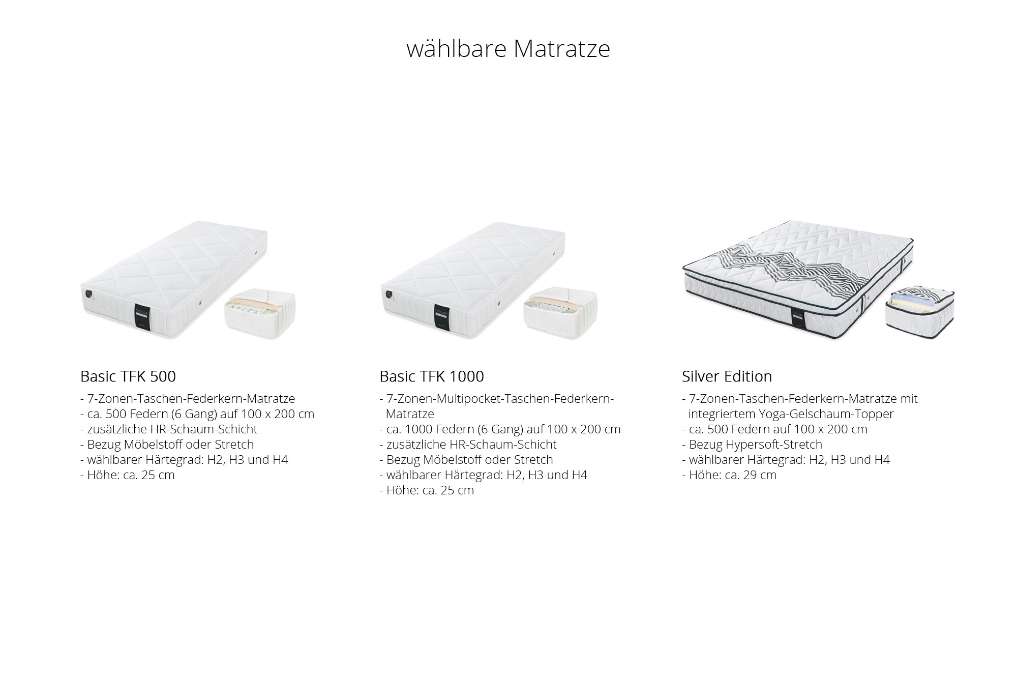 Hinweis! Der Möbelstoff der Matratzen Basic TFK passt sich der gewählten Bezugsausführung des Untergestells / Kopfteils an.