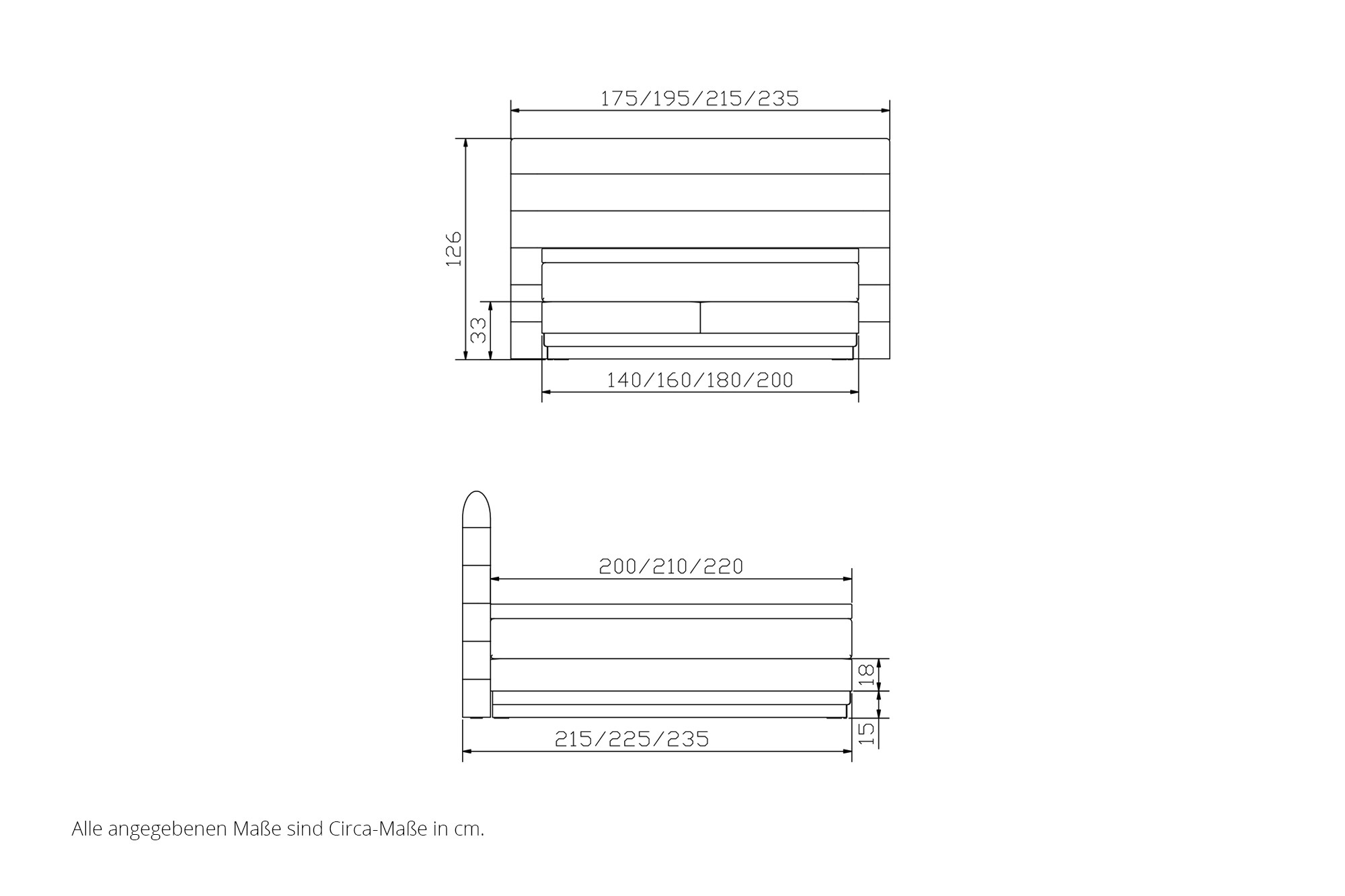 Hinweis! Die Boxen sind ab einer Liegefläche von ca. 160 x 200 cm geteilt. Bitte beachten Sie, dass es sich bei einer Breite von ca. 140 cm um einen durchgängigen Unterbau handelt, deshalb kann es zu einem erschwerten Transport in Ihre Wohnräume kommen. Die Voraussetzung für eine mangelfreie Lieferung und Montage ist eine genaue Berechnung des Raum- und Aufmaßes von Tür, Stockwerk, Treppenhaus, Aufzug und Gangbreiten. - wählbare Matratze: