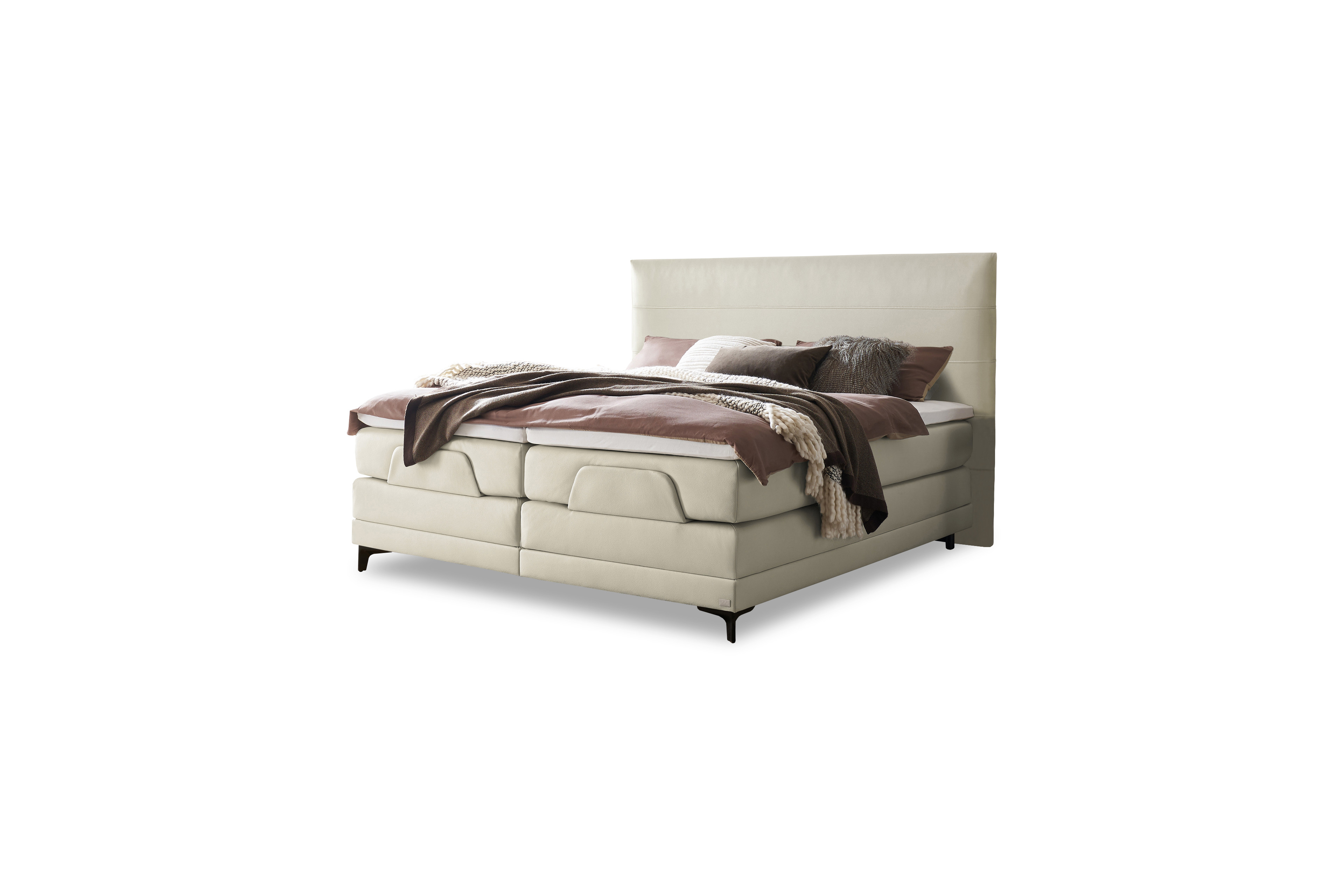 Der Farbton Creme wirkt beschützend sowie freundlich und strahlt Gemütlichkeit wie auch Geborgenheit aus. Dies sind alles wichtige Eigenschaften, die für eine perfekte Einrichtung Ihres Schlafzimmers sorgen. Viel beeindruckender an diesem Hasena Boxspringbett ist jedoch, dass es motorisch ist - ein Schlaferlebnis, was man nicht versäumen sollte. Egal, ob Sie liegen oder sitzen möchten - Sie finden durch die stufenlose Verstellung im Kopf- sowie Rückenbereich die ideale Position. Perfektioniert wird das Ganze zum einen durch die 7-Zonen-Taschen-Federkerne im Untergestell und zum anderen durch die Tonnen-Taschen-Federkerne in den Matratzen. Um noch mehr Liegekomfort zu erhalten, haben Sie die Möglichkeit, in unseren Zusatzoptionen aus neun verschiedenen Topper-Varianten zu wählen. Unter diesem Punkt finden Sie außerdem die passende Nachtkonsole, welche Ihnen in vier verschiedenen Holzausführungen zur Verfügung steht, um Ihr Schlafzimmer einheitlich einzurichten - denn Sie können ebenso das Boxspringbett in den unterschiedlichsten Farben beziehen lassen. Selbst wenn Sie nachts einmal wach werden und Ihre Liegeposition ändern möchten, können Sie die Liegefläche aufgrund der LED-Hintergrundbeleuchtung der Funkfernbedienung sogar im Dunkeln verstellen. Mit dem motorischen Boxspringbett Mary von Hasena Comfort erleben Sie demzufolge zu jeder Tages- und Nachtzeit den größten Komfort und fühlen sich somit anhaltend geborgen.