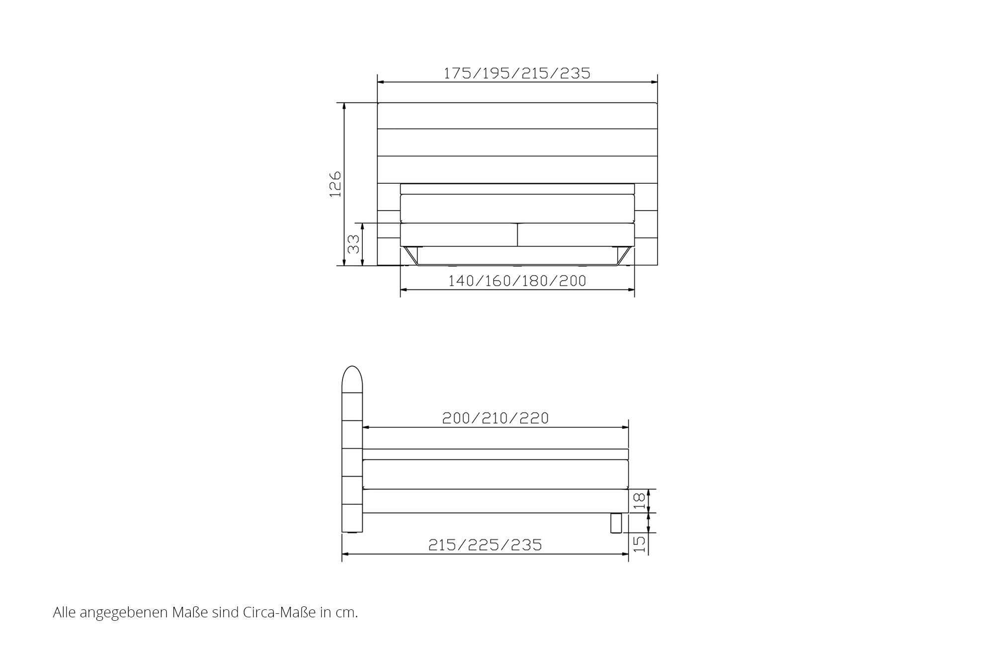 Hinweis! Die Boxen sind ab einer Liegefläche von ca. 160 x 200 cm geteilt. Bitte beachten Sie, dass es sich bei einer Breite von ca. 140 cm um einen durchgängigen Unterbau handelt, deshalb kann es zu einem erschwerten Transport in Ihre Wohnräume kommen. Die Voraussetzung für eine mangelfreie Lieferung und Montage ist eine genaue Berechnung des Raum- und Aufmaßes von Tür, Stockwerk, Treppenhaus, Aufzug und Gangbreiten. - wählbare Matratze: