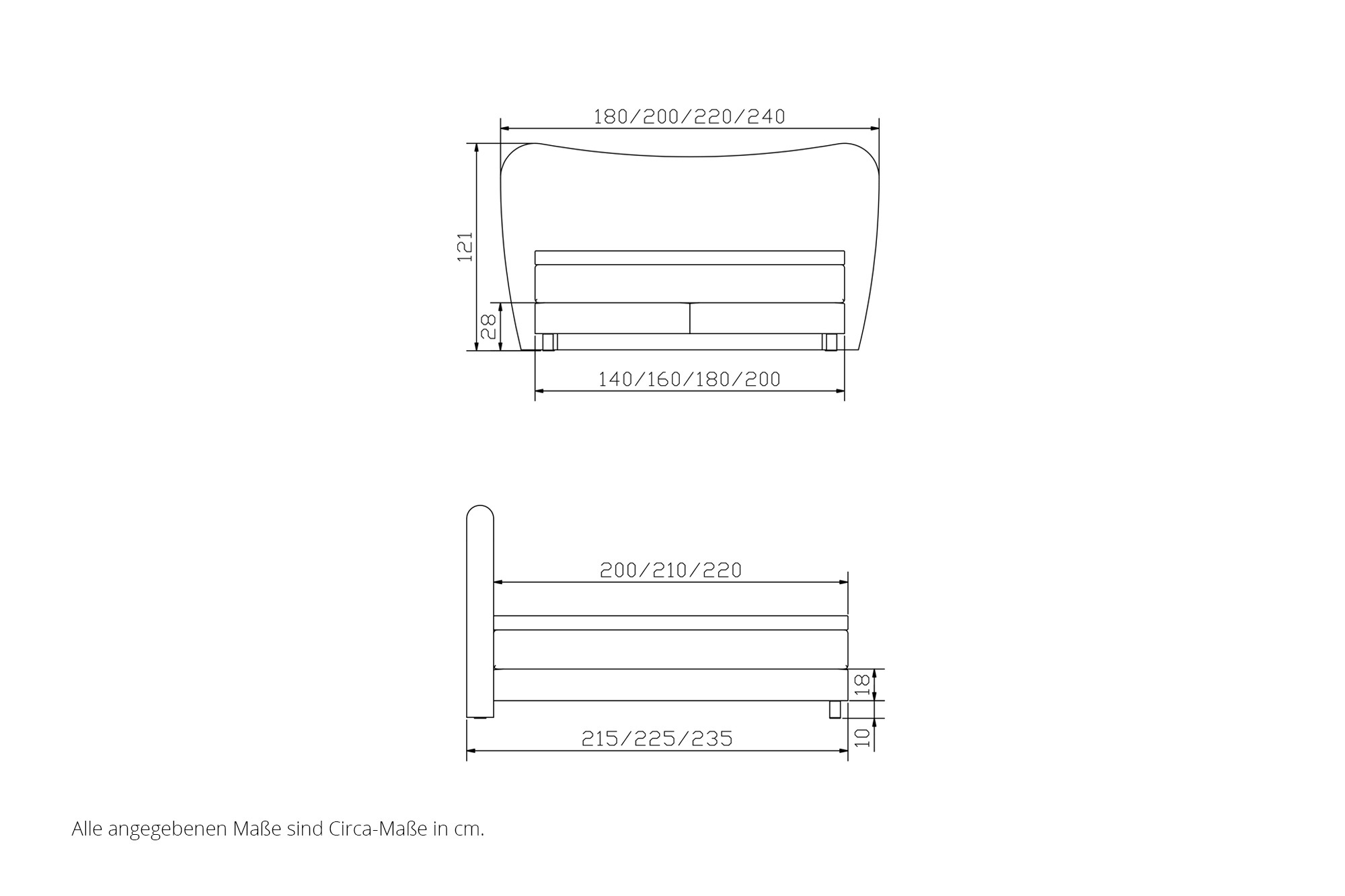 Hinweis! Der Bezug der Stoffmatratzen passt sich der gewählten Bezugsauswahl des Untergestells / Kopfteils an.