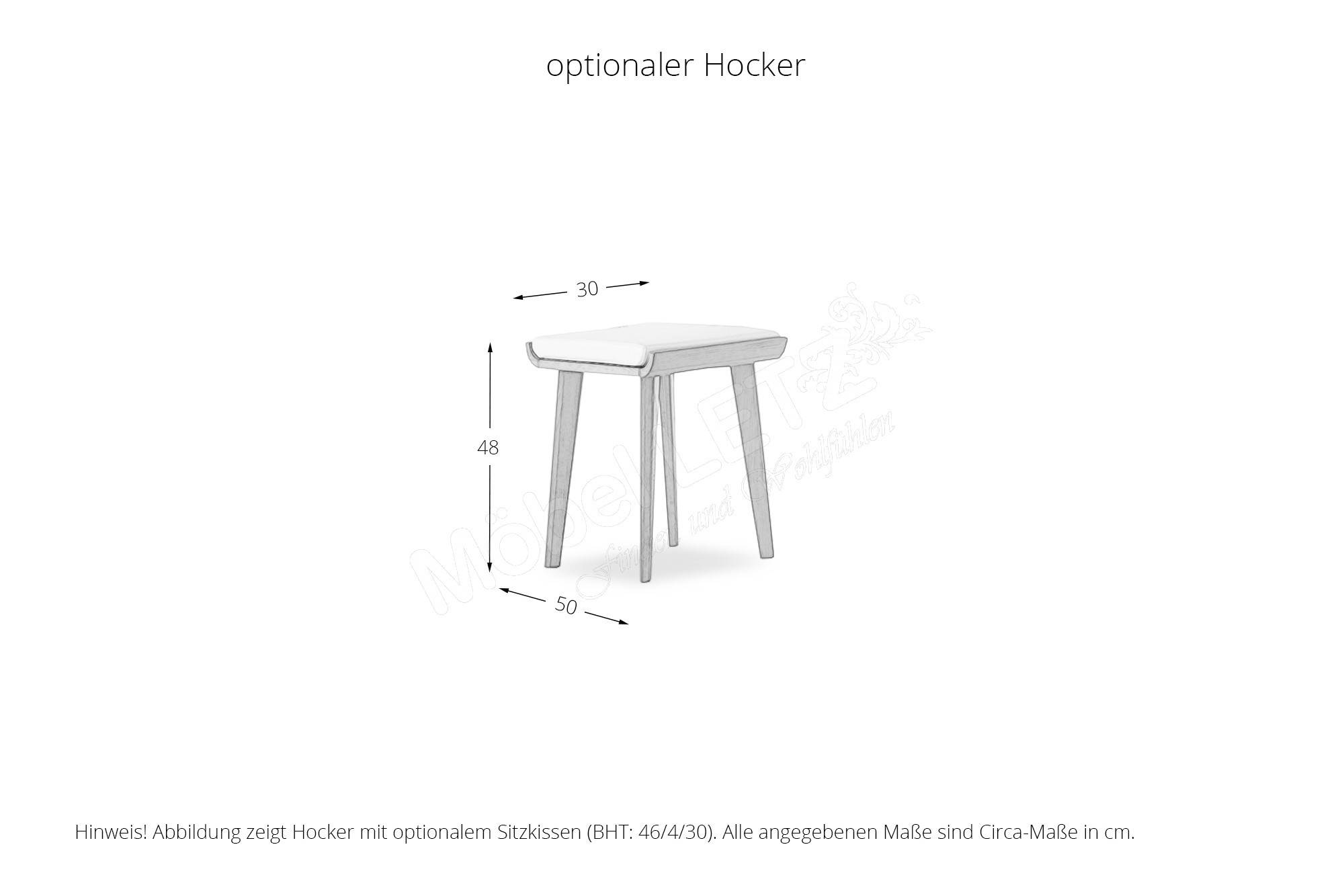 Hocker Carolo in Massivholz, max. belastbar bis 100 kg, ca. BHT: 50/48/30 cm, optional mit Sitzkissen Rolo, ca. BHT: 46/4/30 cm