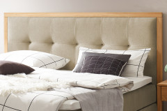 Hineinlegen, wohlfühlen, träumen - dazu lädt das Boxspringbett von Hasena förmlich ein. Die unglaublich harmonische Komposition aus einem hellen beigen Chenille-Flachgewebe und der Ausführung in Eiche bright lässt eine vollkommen neue Atmosphäre in Ihrem Schlafzimmer entstehen. Weiterhin bietet Ihnen das Modell Alba aus der Kollektion Boxspring Pronto durch seine zwei Bettkästen die Möglichkeit, beispielsweise Bettwäsche und Kissen geordnet unterzubringen. Die bequeme Matratze, welche zwei Tonnen-Taschen-Federkerne beinhaltet, erhalten Sie als durchgängige Variante inklusive aufliegenden Schaum-Topper. Dabei steht Ihnen frei, ob Sie einen festen, mittleren oder soften Liegekomfort bevorzugen. Um dieses traumhafte Ambiente auf Ihre Wünsche anzupassen, stehen Ihnen unter unserer Bezugsübersicht eine kleine Auswahl an verschiedenen Stoffarten und Farben zur Verfügung. Wenn nun auch Sie von diesem hochwertigen Boxspringbett in dieser herrlichen Ausführung überzeugt sind, dann überlegen Sie nicht lange und bestellen Sie sich passende Beimöbel dazu. Es erwarten Sie praktische Nachtkonsolen, die ebenfalls in der Holzausführung des Bettes gestaltet wurden. So viel Gemütlichkeit, solch ein hoher Komfort und dazu noch eine beispiellose Optik und das alles vereint in einem Boxspringbett.