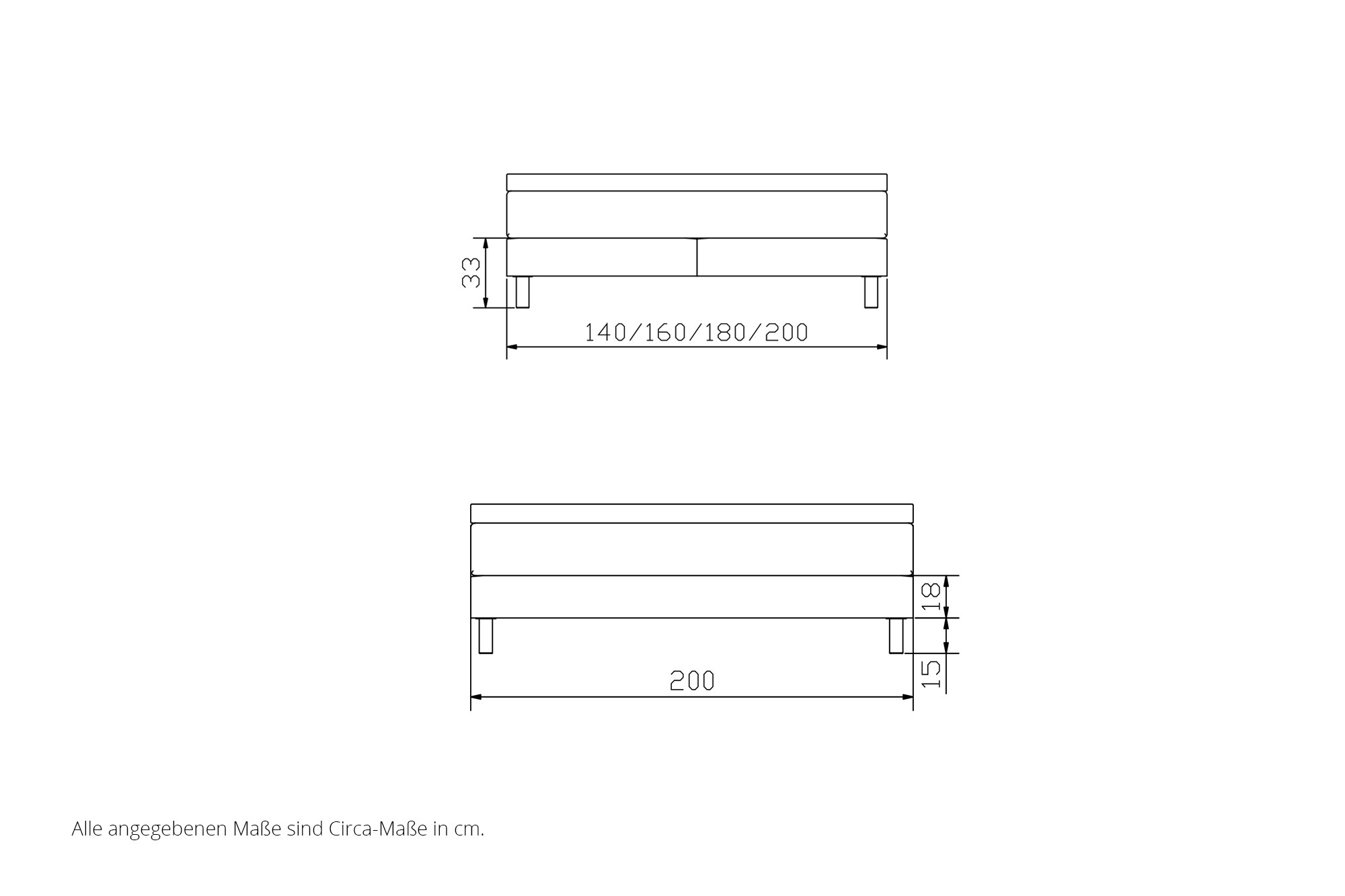 - Box: Holzrahmen aus massiver Buche / Fichte / Tanne, 2-sektorig, Bonell-Federkern (ca. 176 Federn auf 100 x 200 cm)