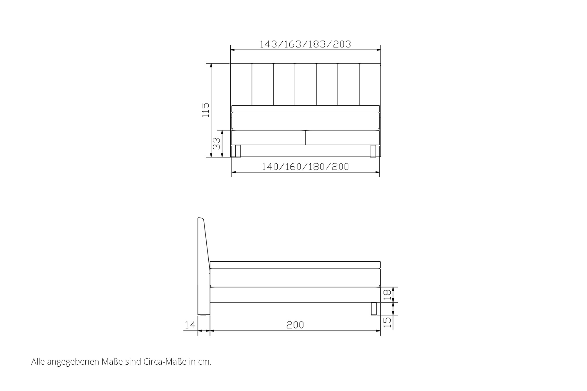 - 1 x Kopfteil - mit Steppung, ca. BHT: 163/115/14 cm